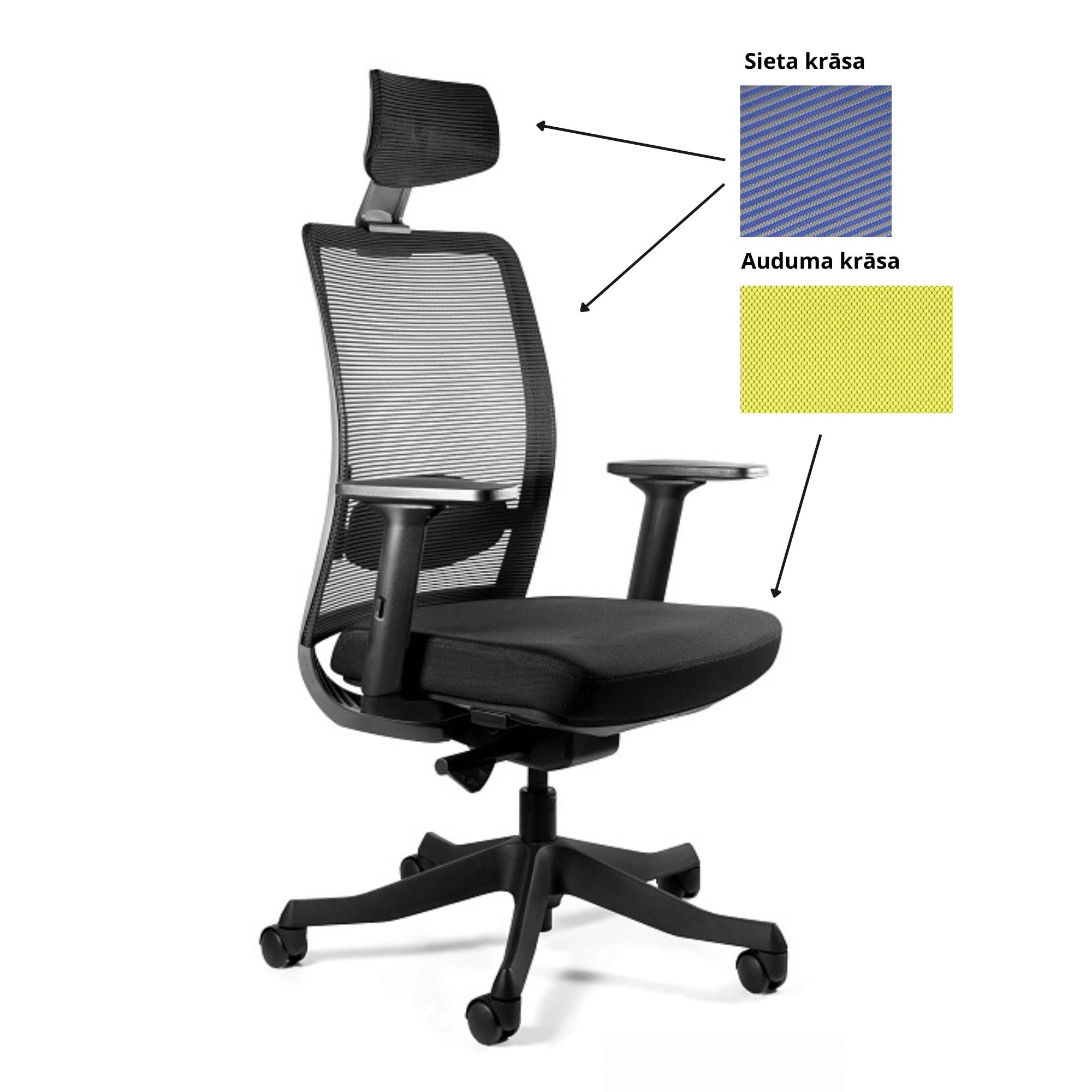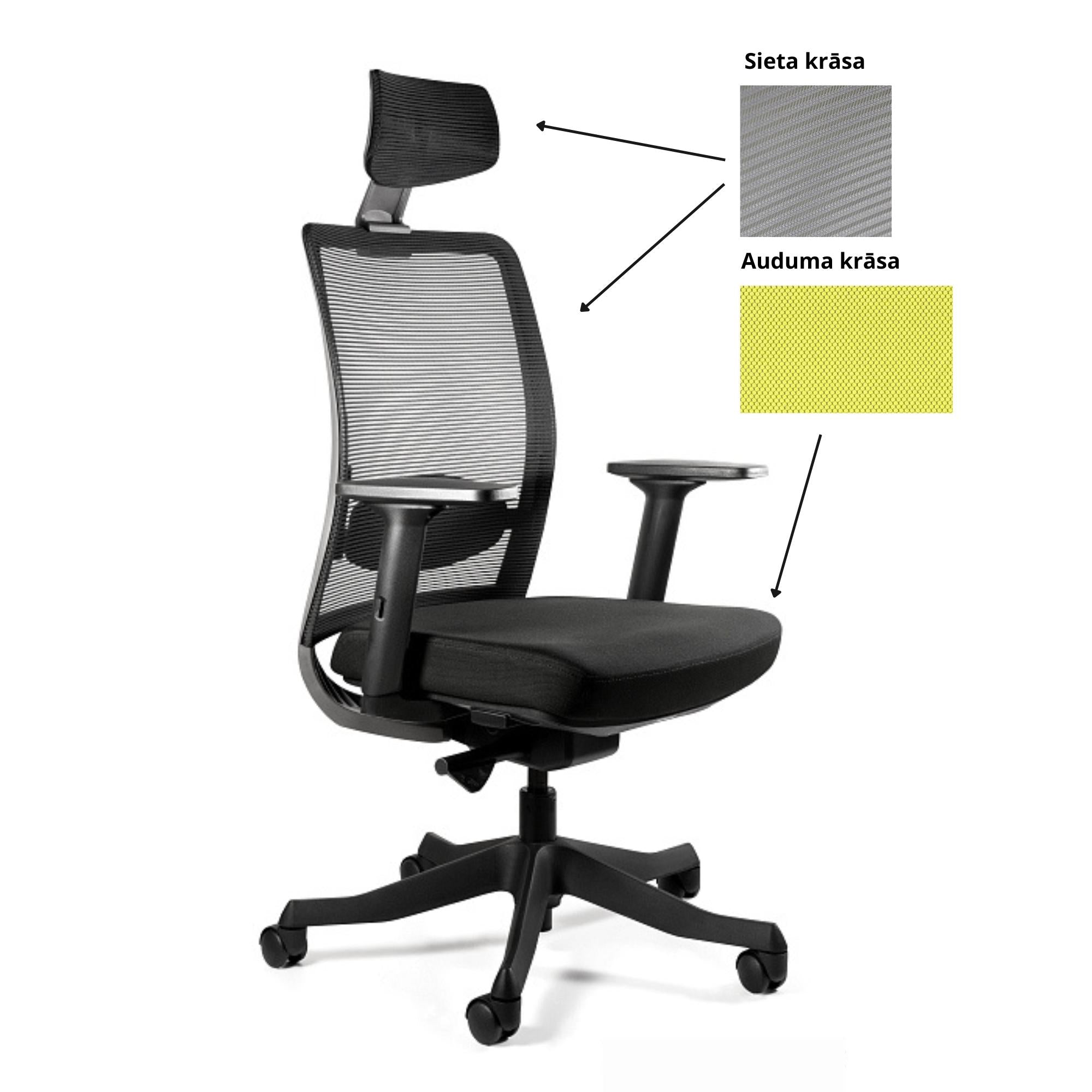 Krēslā ir izmantots sinhronais nolieces mehānisms ar fiksatoru, un krēsla pamatne ir izgatavota no izturīga, īpaši izturīga neilona.