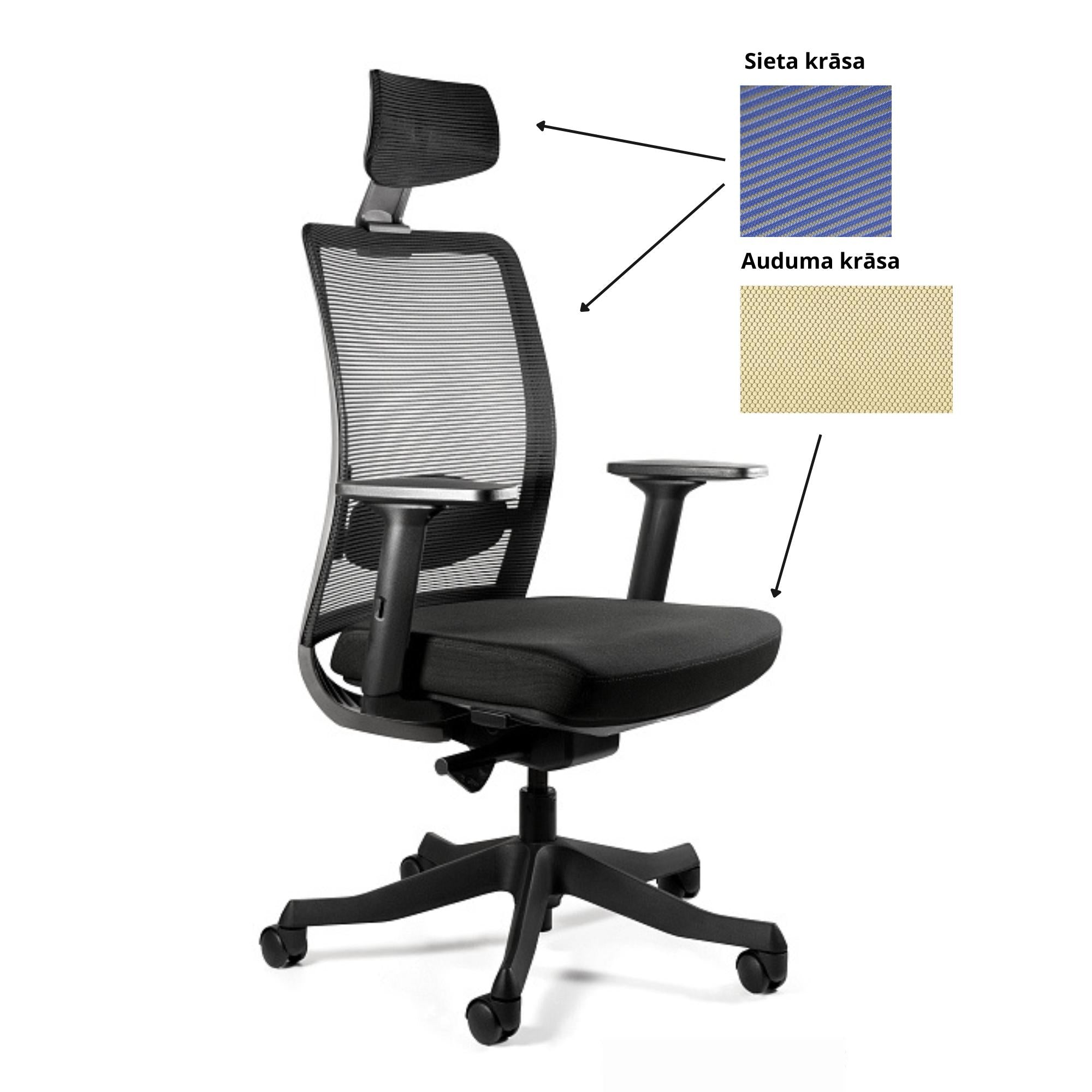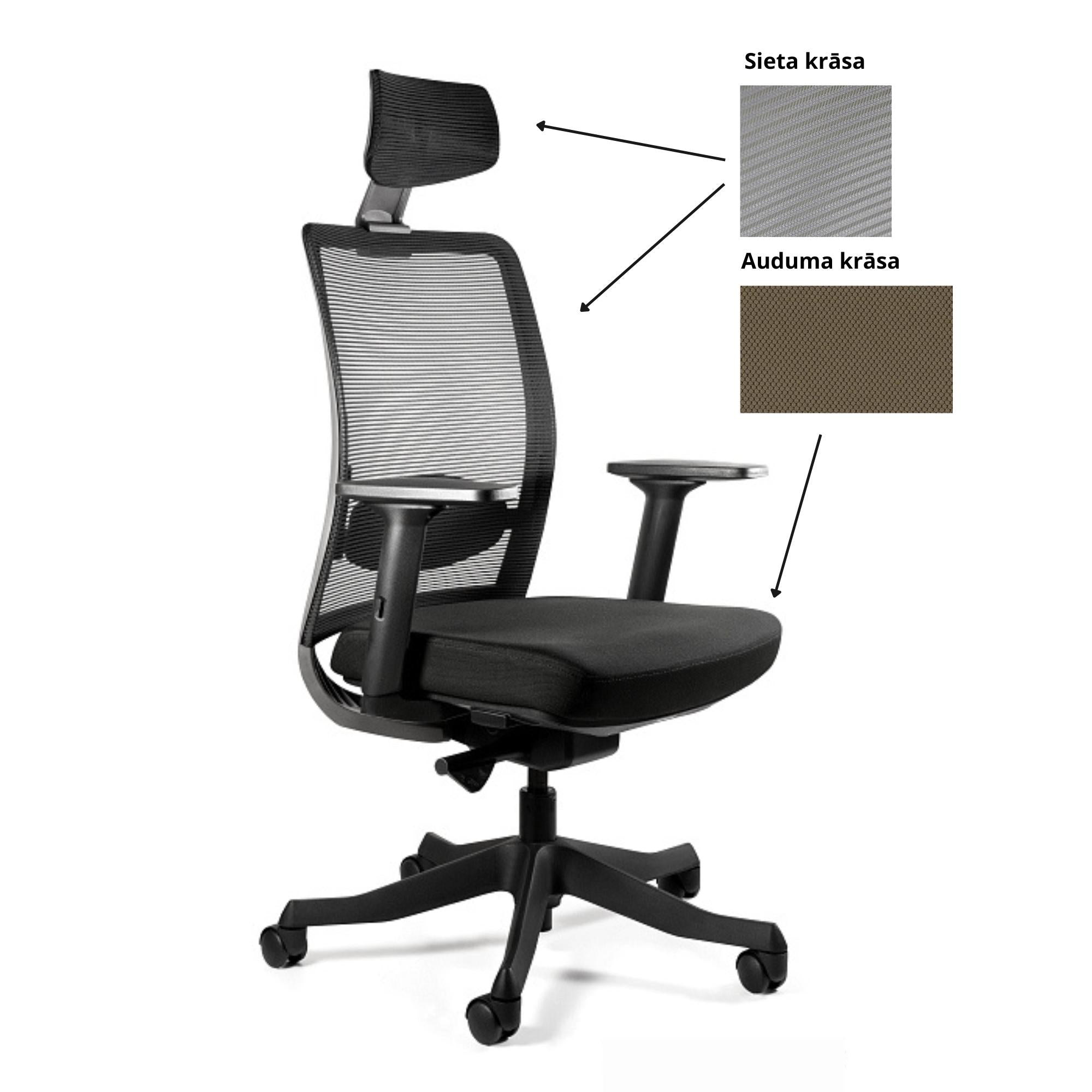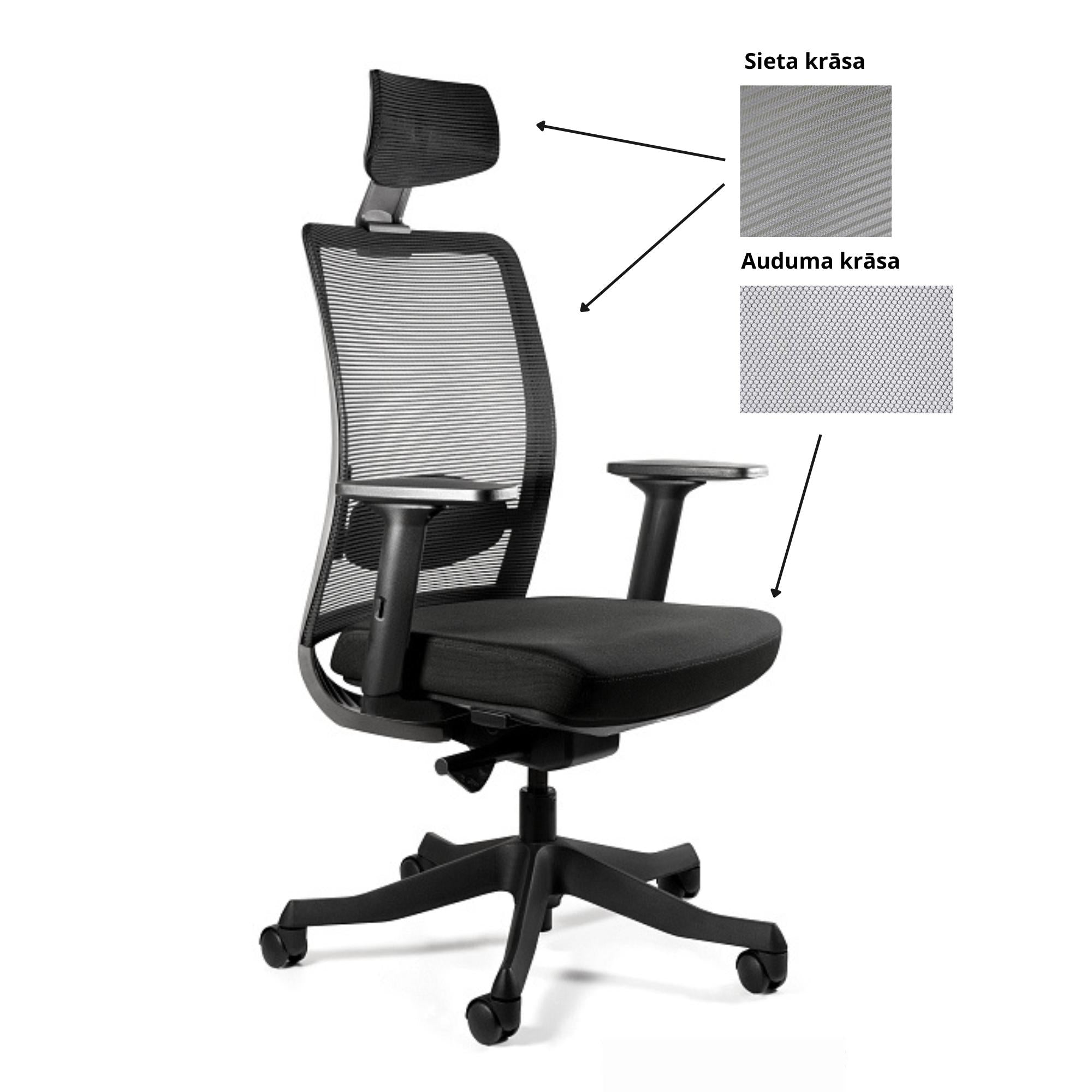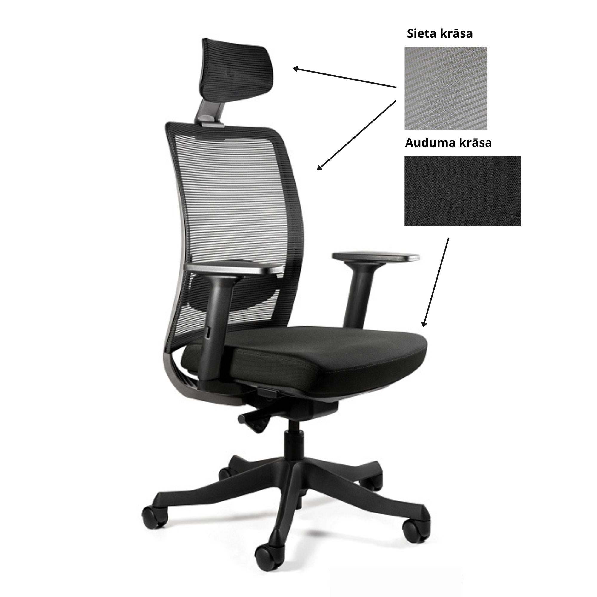 - Galvas balsts un atzveltne polsterēti ar sietveida audumu;