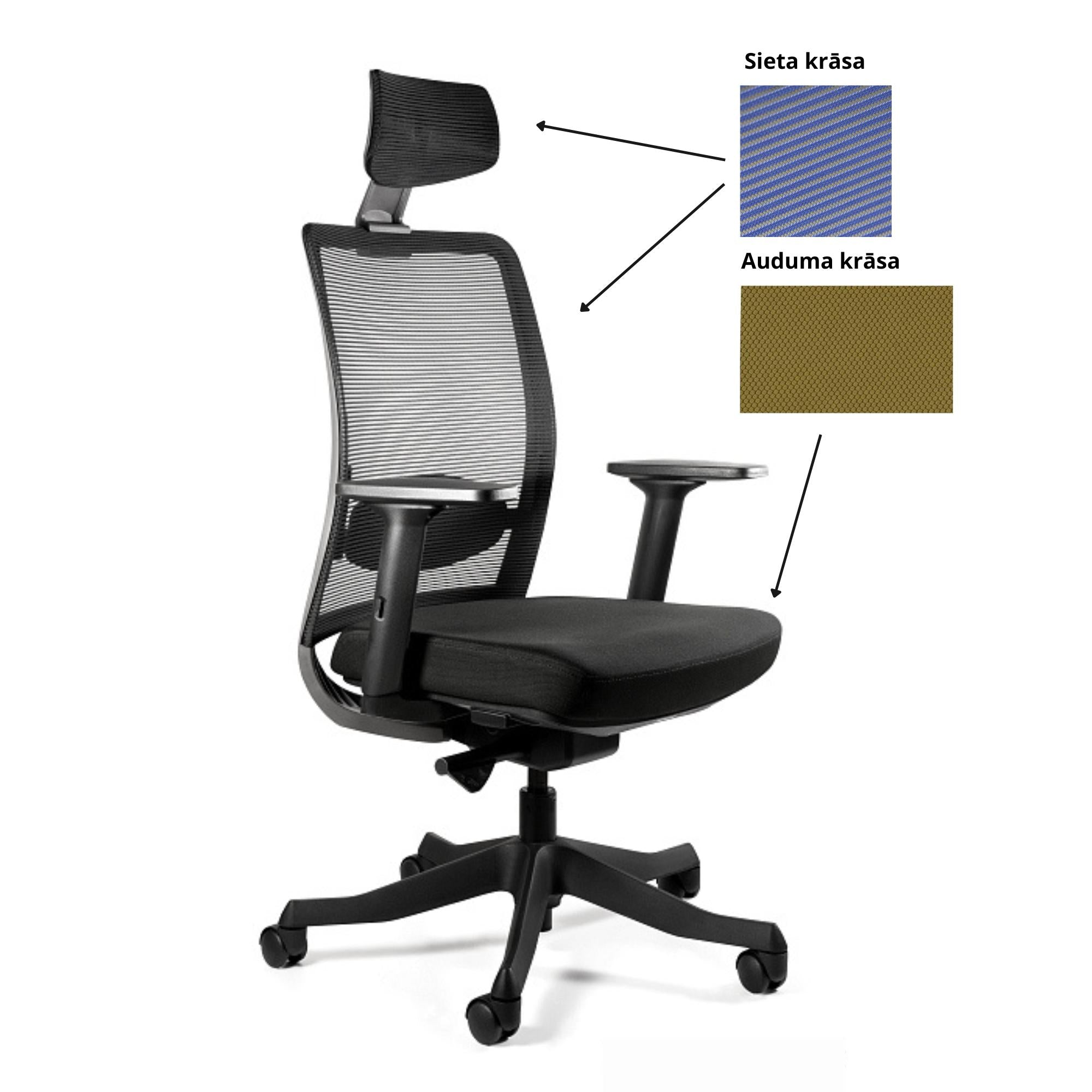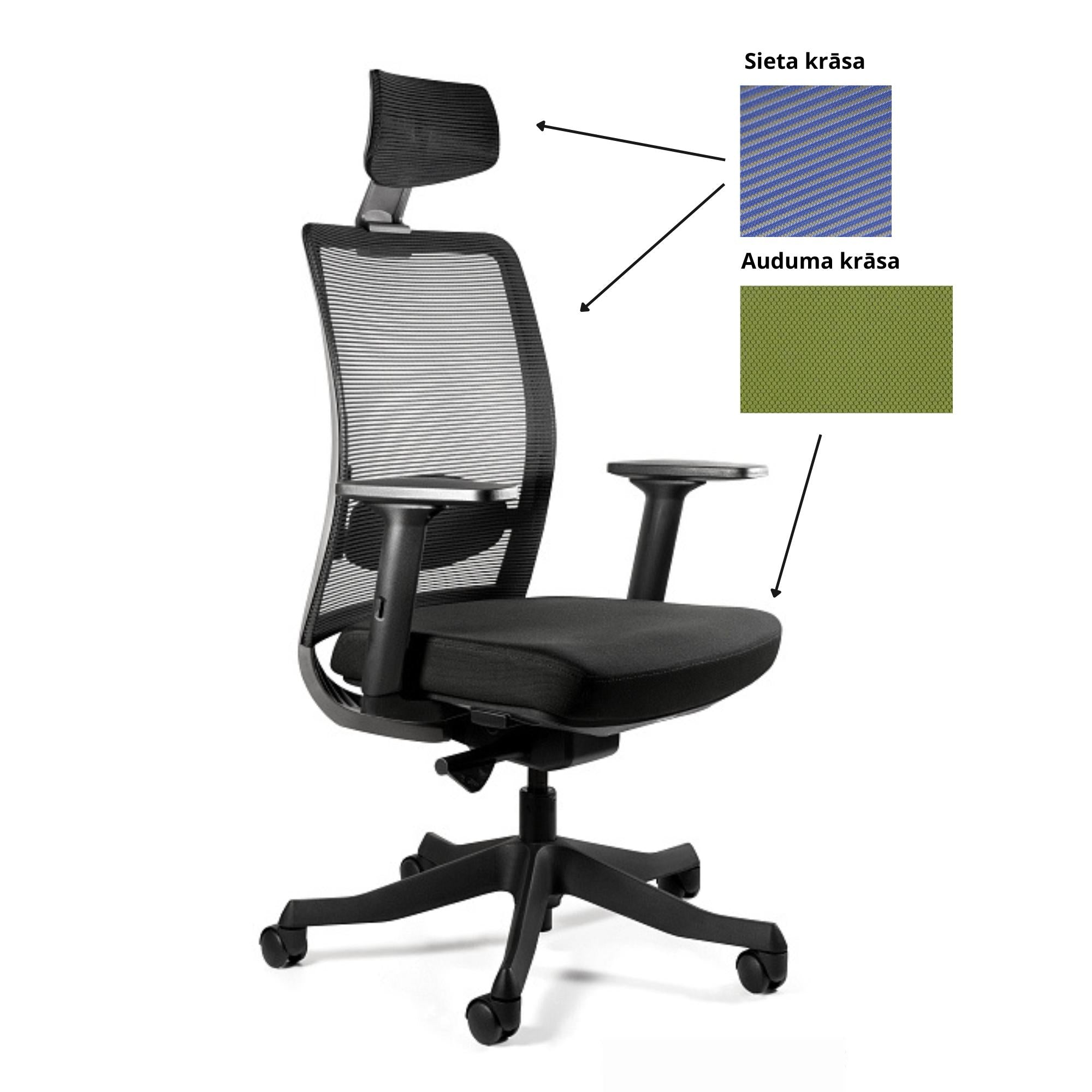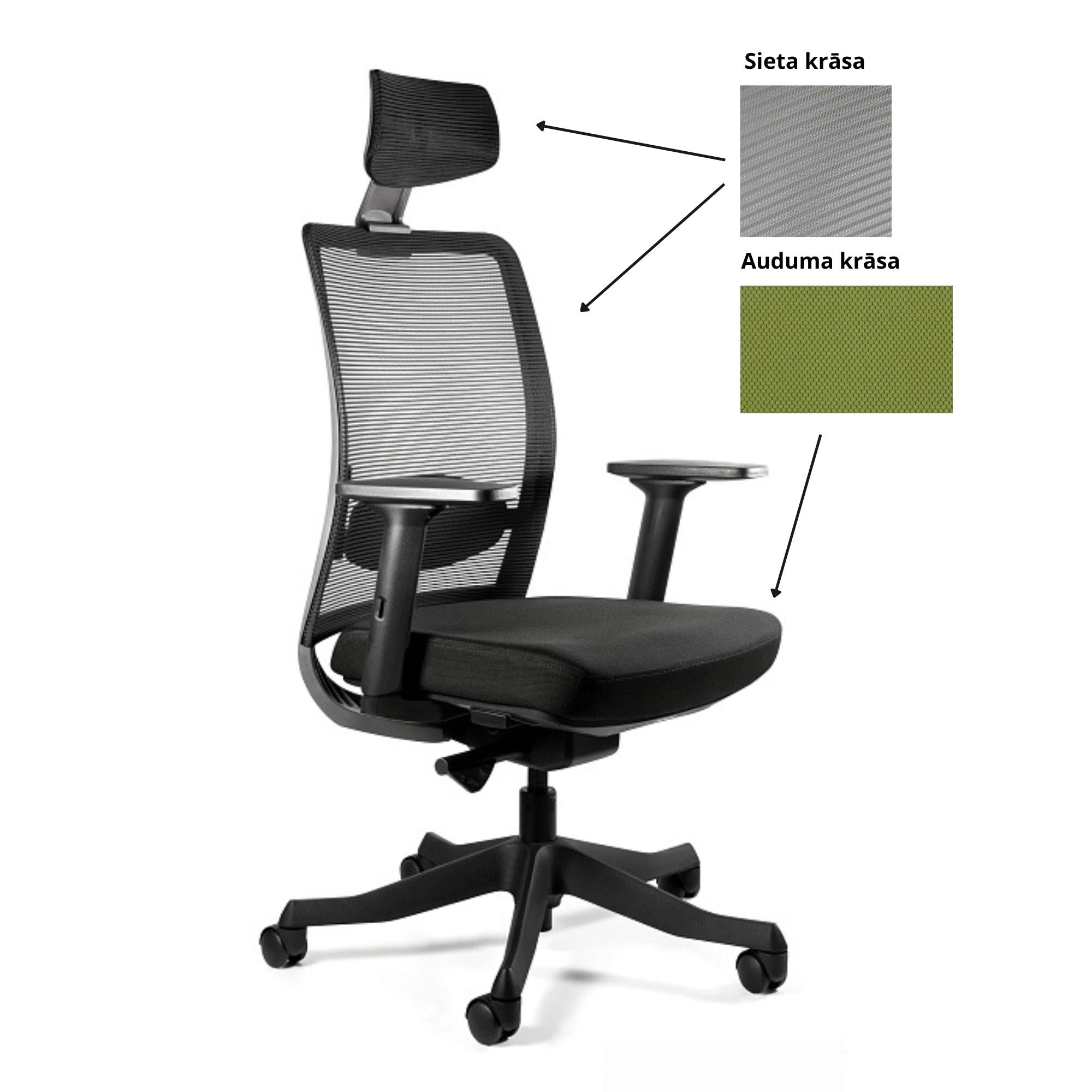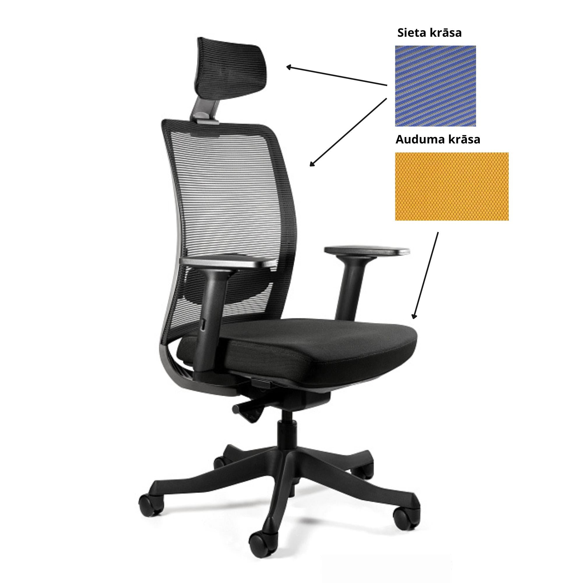 - Galvas balsts un atzveltne polsterēti ar sietveida audumu;