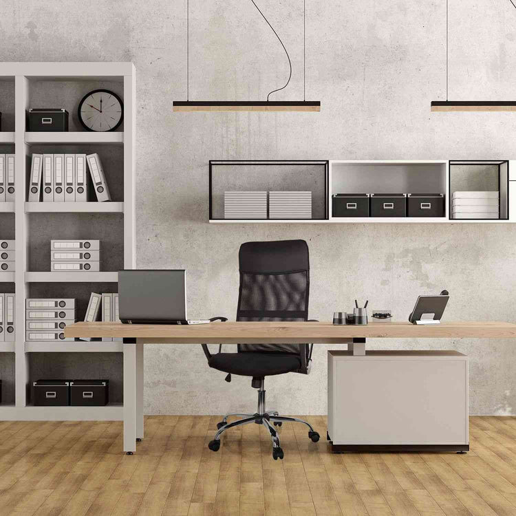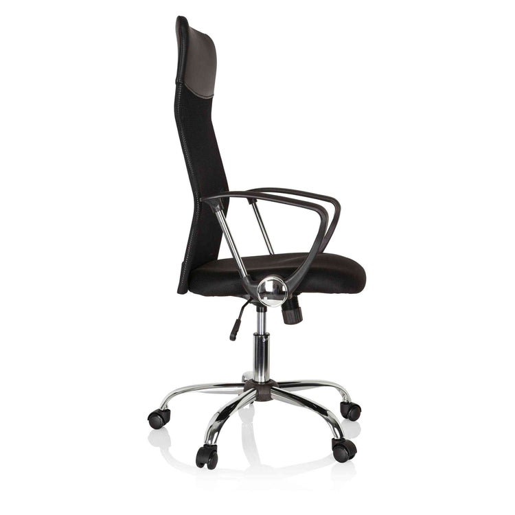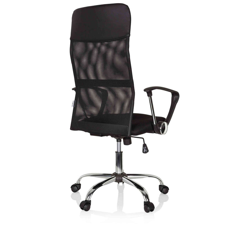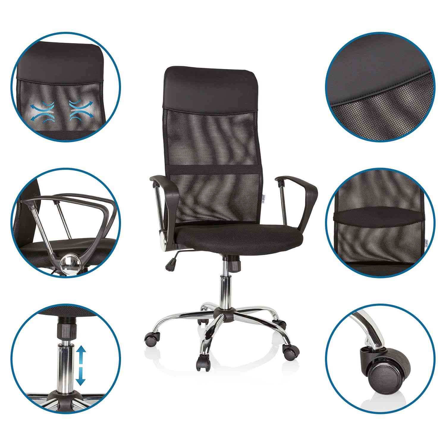 Ergonomiski veidotā atzveltnes atzveltnes sieta un mākslīgās ādas kombinācija, kā arī stilīgie roku balsti, kas izgatavoti no metāla un plastmasas, sniedz tam modernu izskatu. Lielā hromētā tērauda pamatne nodrošina stabilitāti.