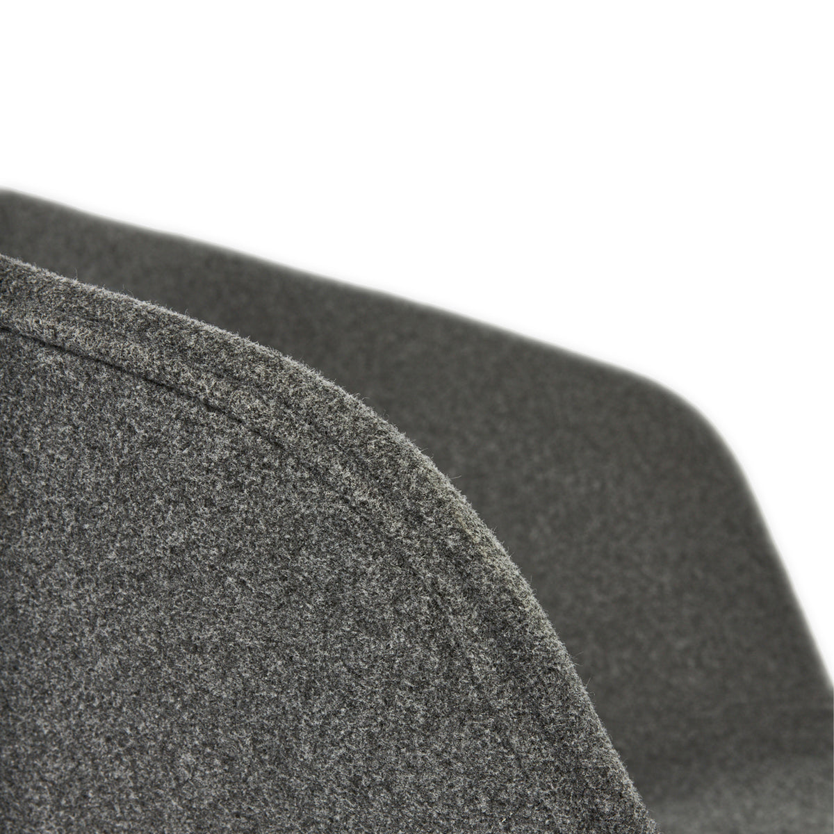 Krēsla mīkstā vilnas filca polsterējuma apdare ir patīkama pieskārienam un estētiski pievilcīga mūsdienīgā minimālismā. Pieejams silti pelēkā krāsā.