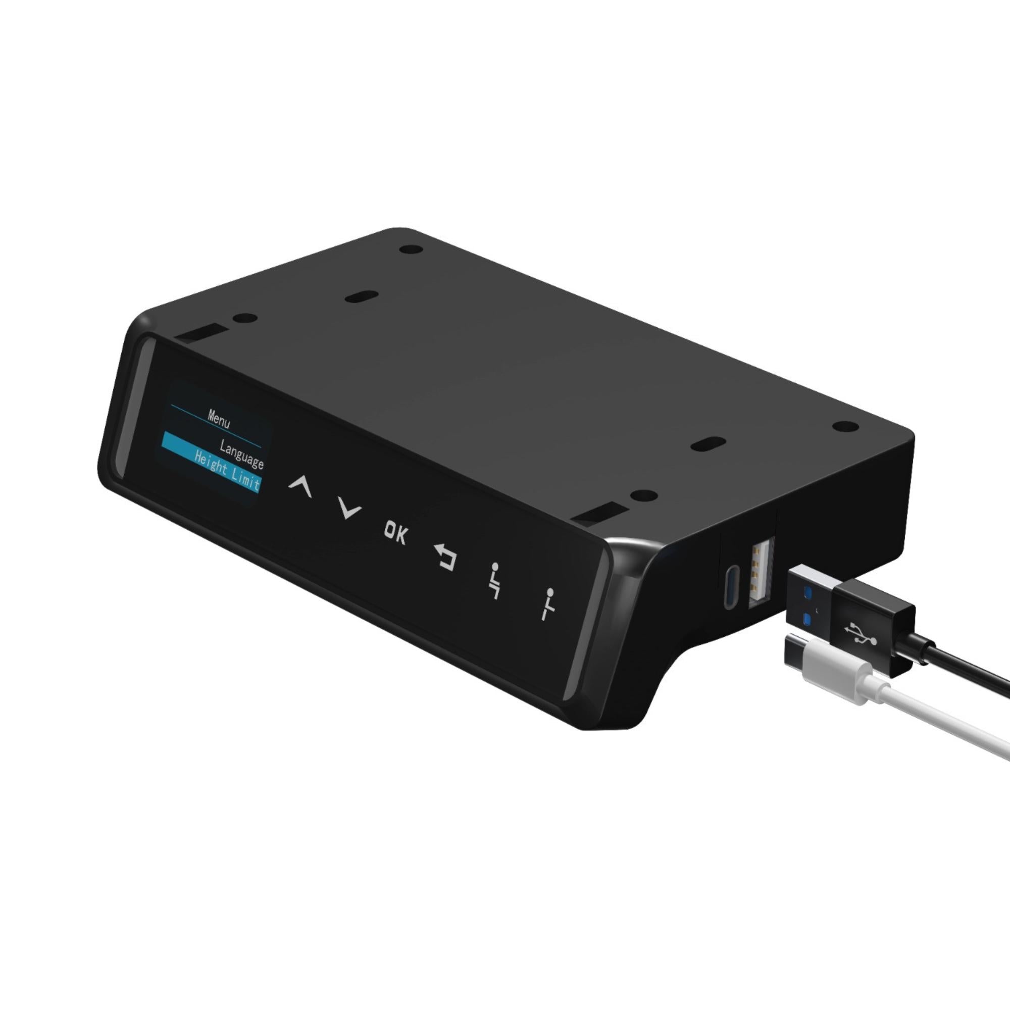 Tas aprīkots ar Touchscreen vadības paneli, taimeri, USB-A un USB-C uzlādes vietām, pretsadures mehānismu, bērnu drošības slēdzi, atmiņas funkciju 8 pozīcijām. Galdu darbina divi jaudīgi elektromotori, kuriem tiek nodrošināta 10 gadu garantija.