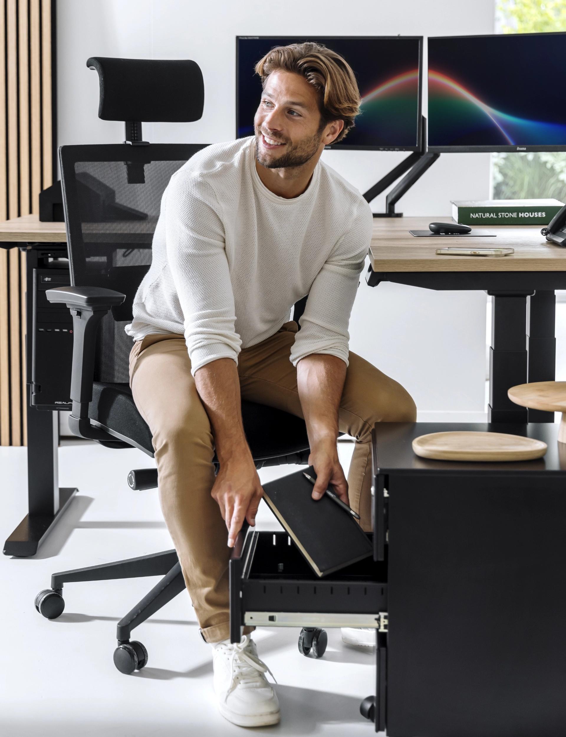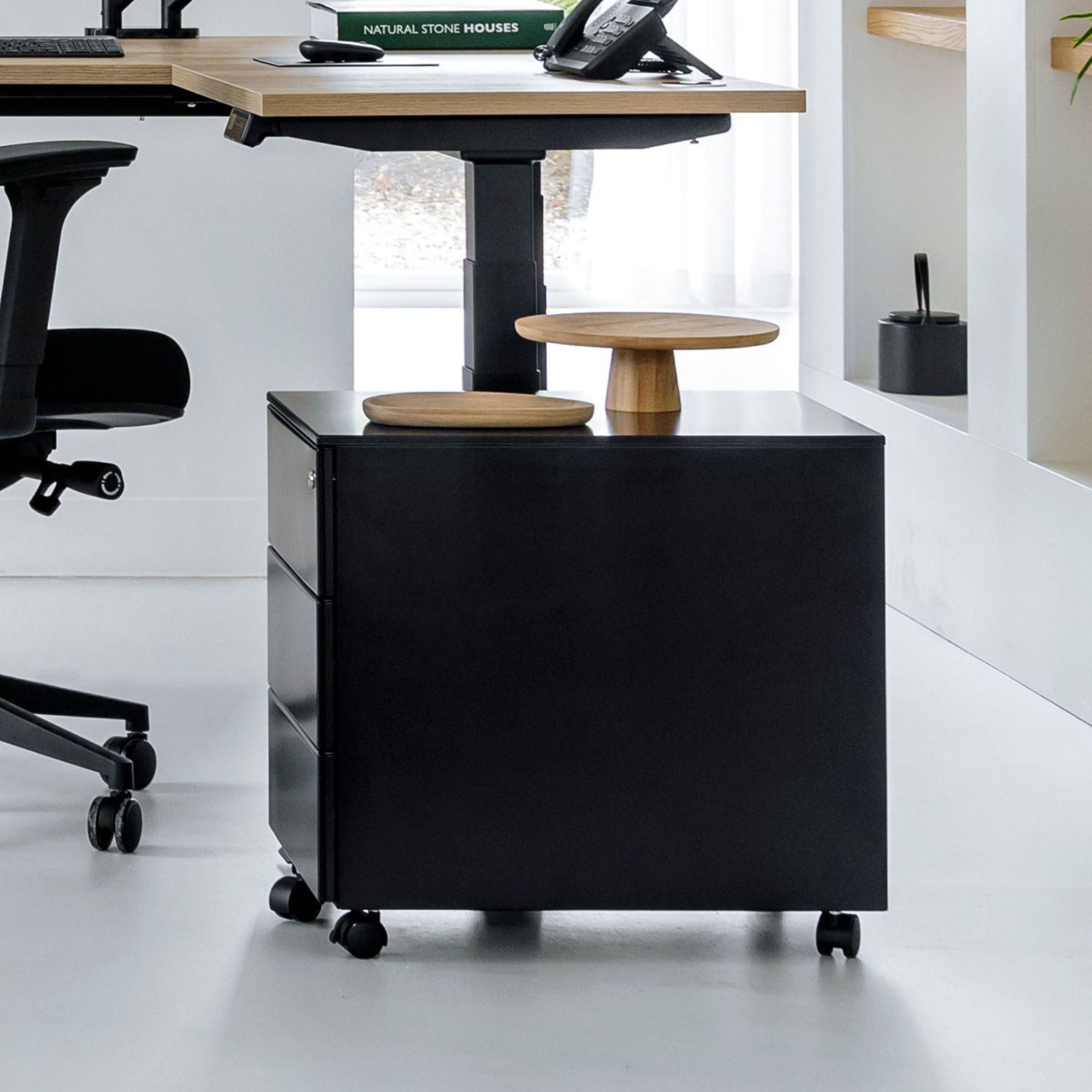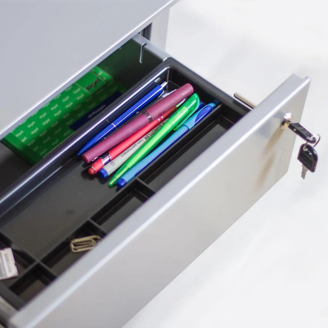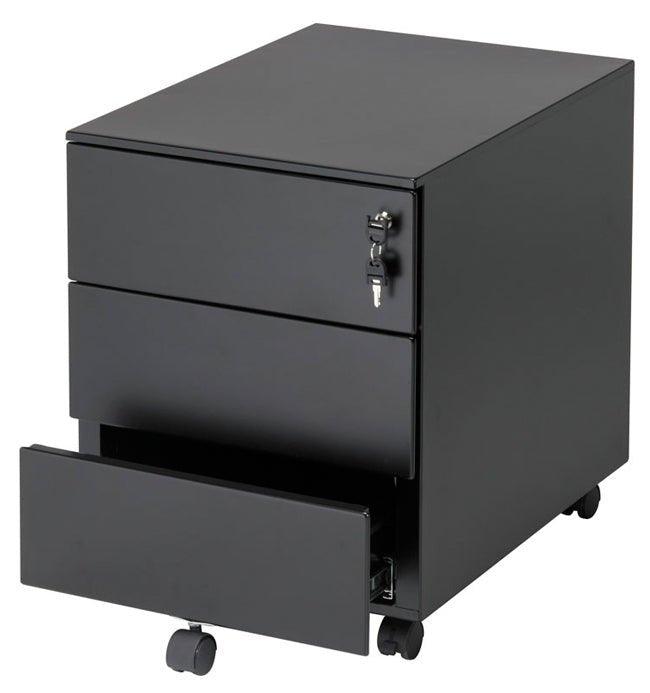 Kompakts un pārvietojams metāla atvilktņu bloks ar slēdzamām atvilktnēm. Ērti novietojams pie vai zem galda, aprīkots ar izturīgiem ritentiņiem (ar bremzi).