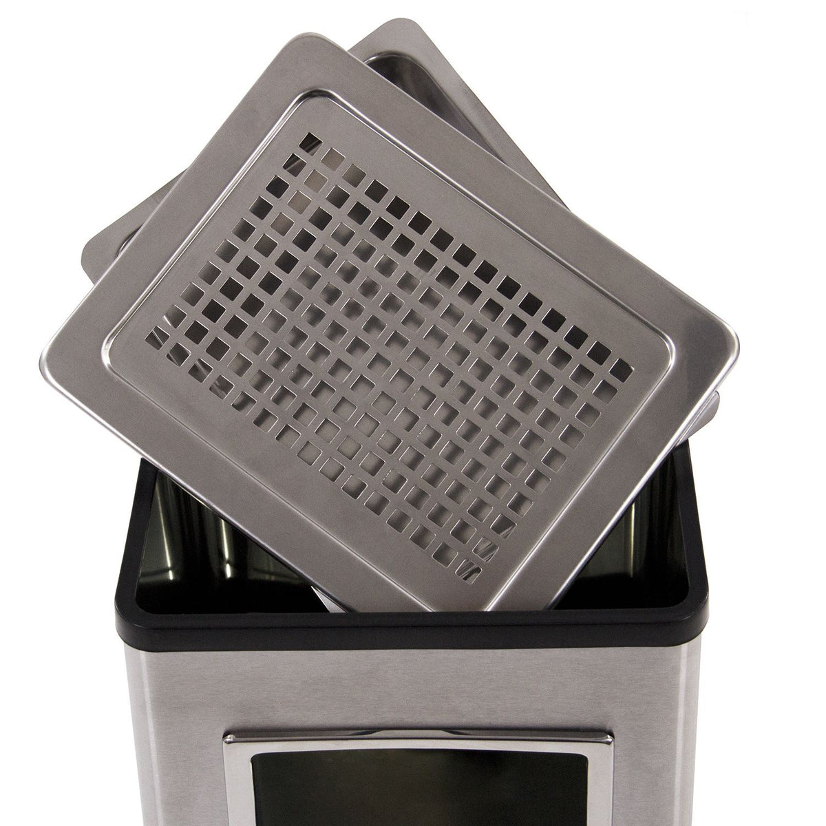 Šis vertikālais pelnu trauks ir īpaši viegli tīrāms, pateicoties tā izturīgajam materiālam. Izņemamais pelnu trauka ieliktnis, kas sastāv no pelnu trauka ar noņemamu konteineru un režģi, vēl vairāk vienkāršo tīrīšanu. Šo praktisko ieliktni var izmantot arī kā galda pelnu trauku. Iekšējais spainis ar tilpumu 16 L un atkritumu maisu fiksācijas gredzenu.