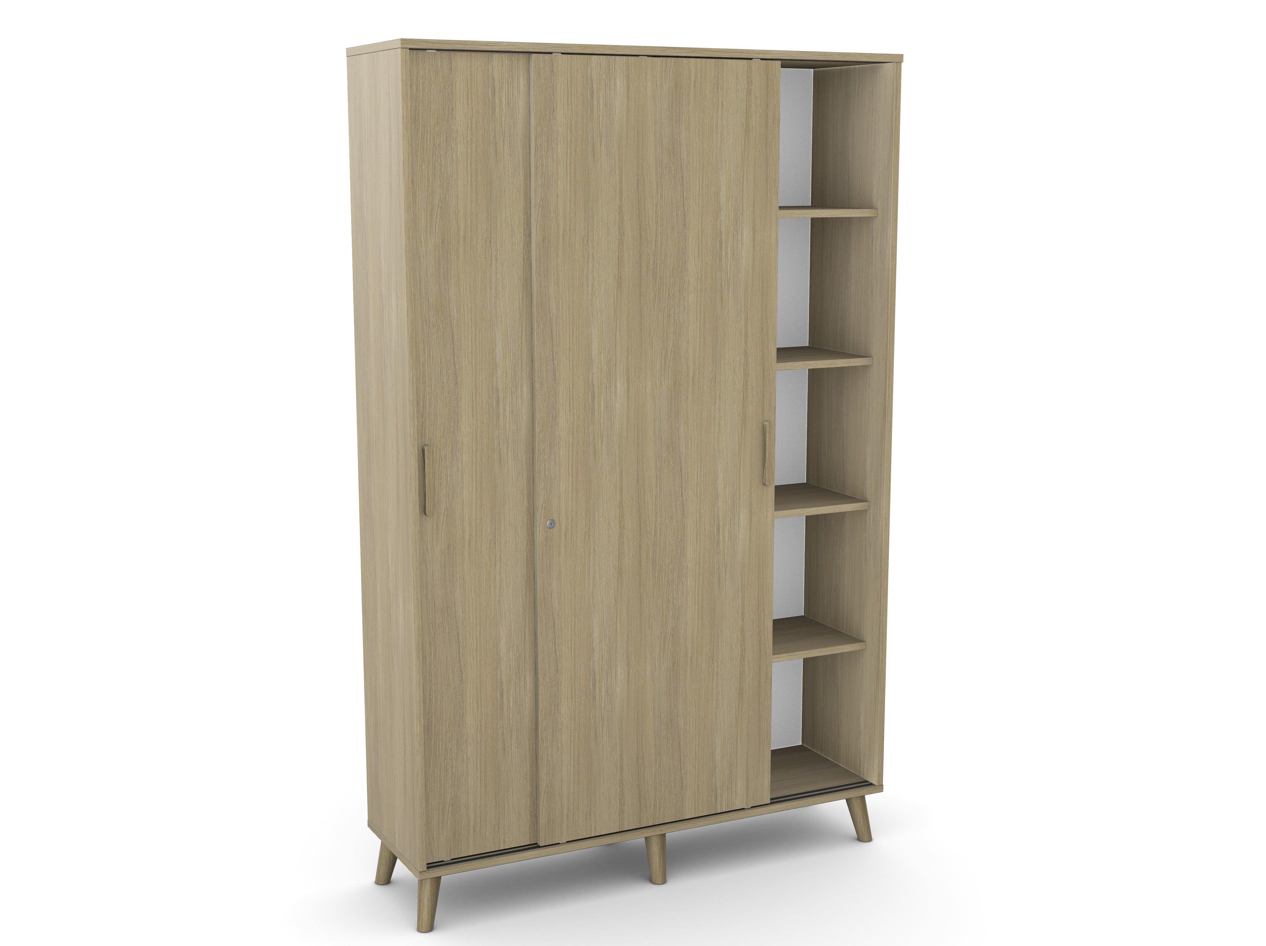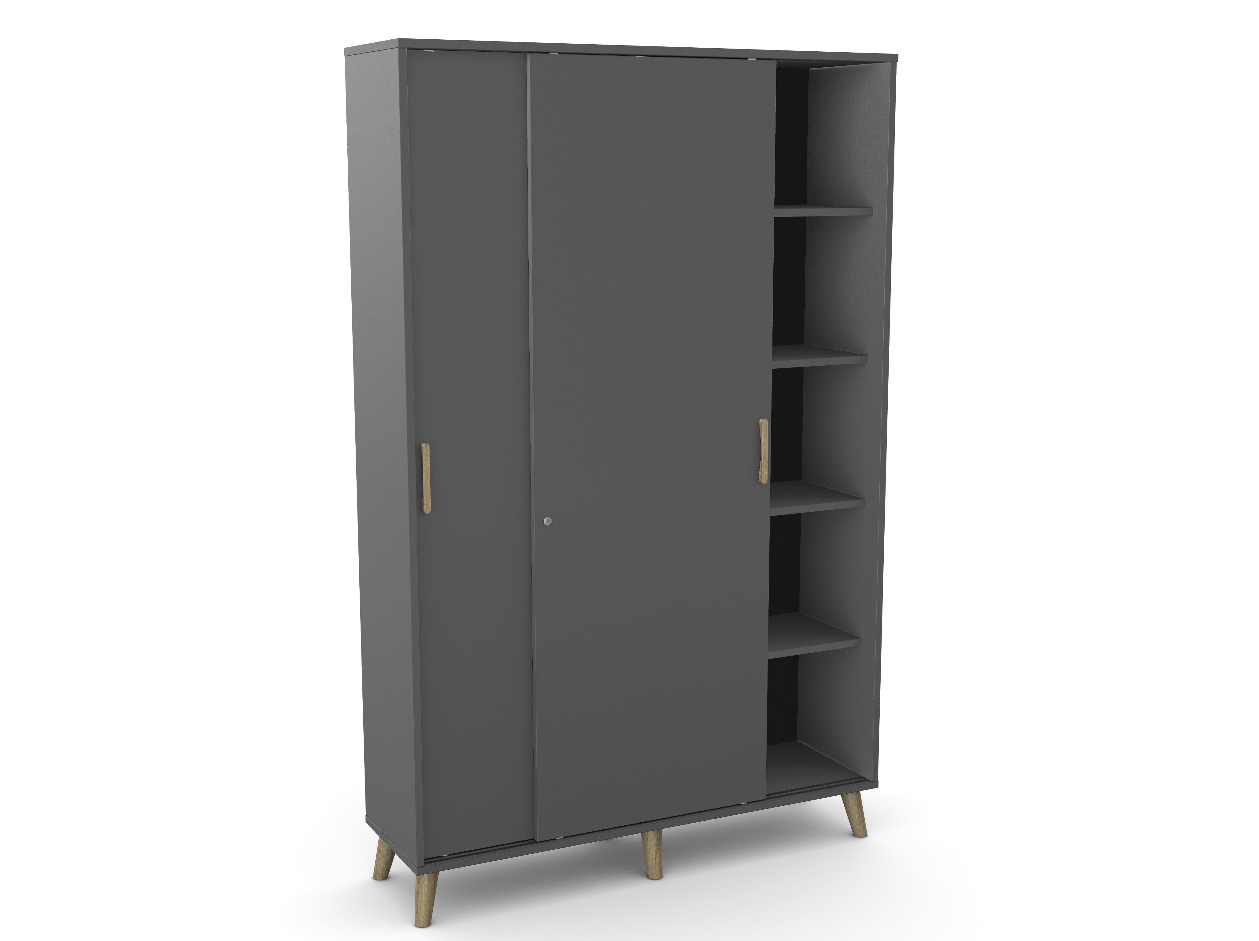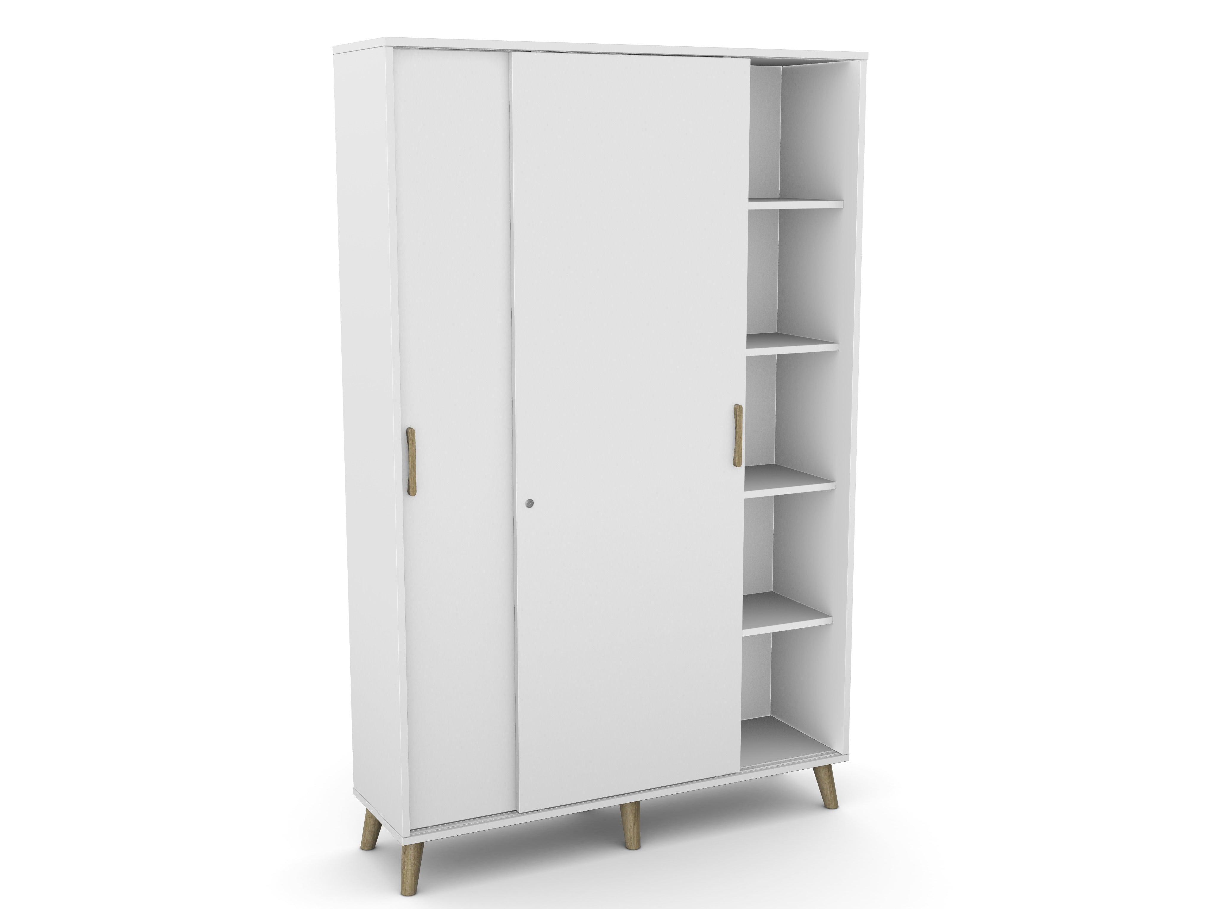 Skapis aprīkots ar regulējamām kājiņām, kā arī bīdāmām durvīm.