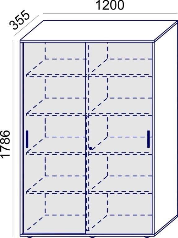 Biroja skapis Flexx, ar bīdāmām durvīm un 10 plauktiem, 1800 x 1200 x 355 mm