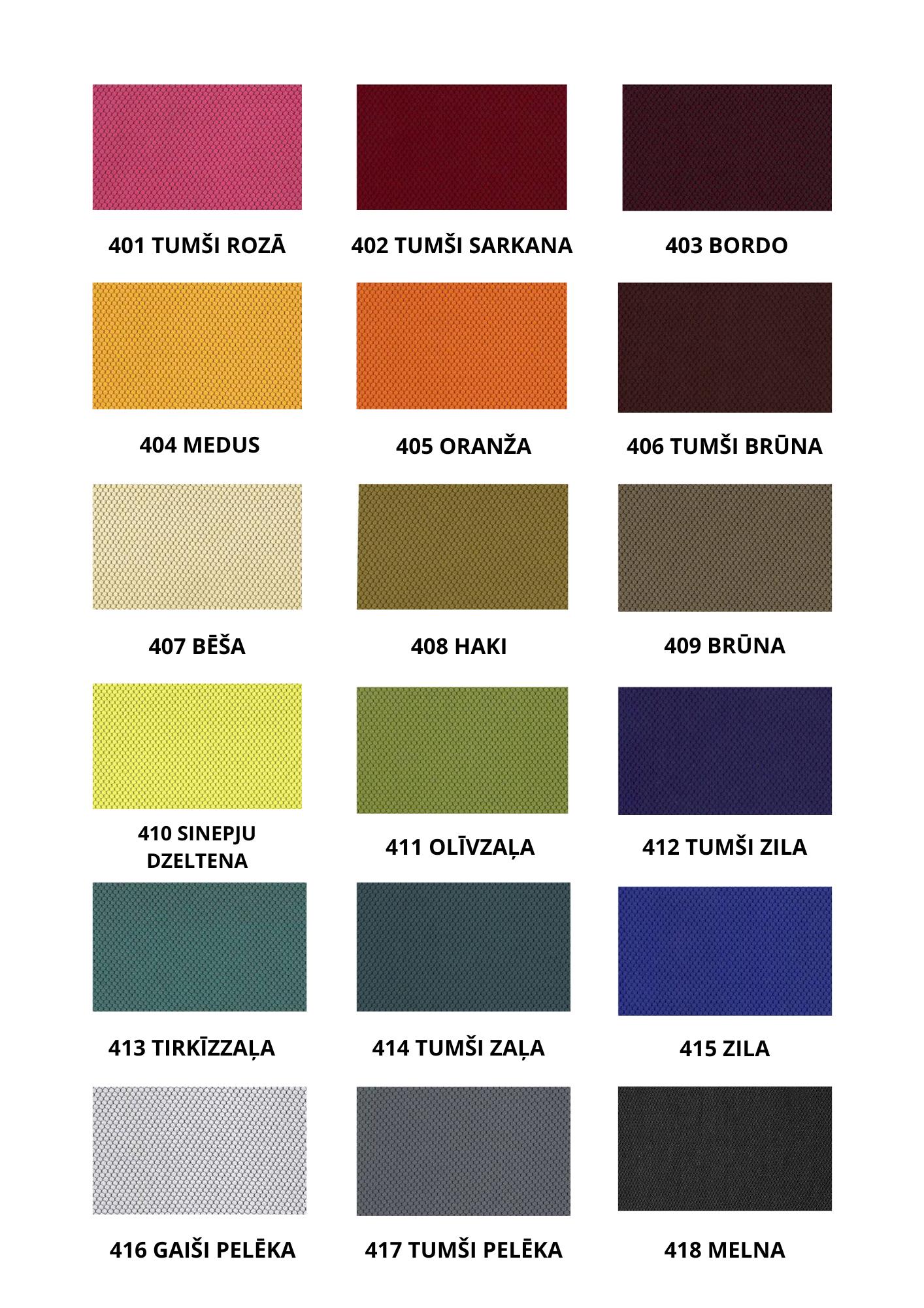 Krēsla apdare no balta vai melna izturīga neilona;