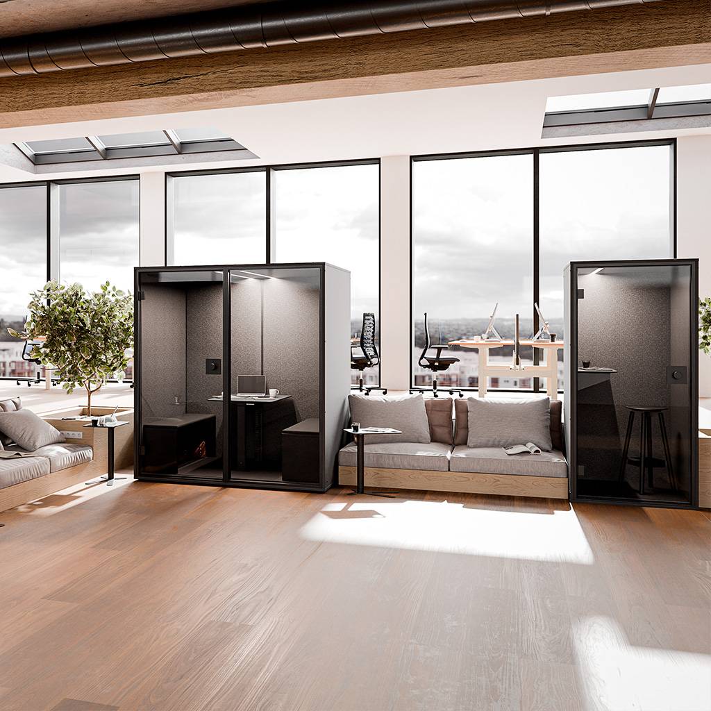 Klusuma kabīne Berlin Acoustics Meet Black, konfigurējama