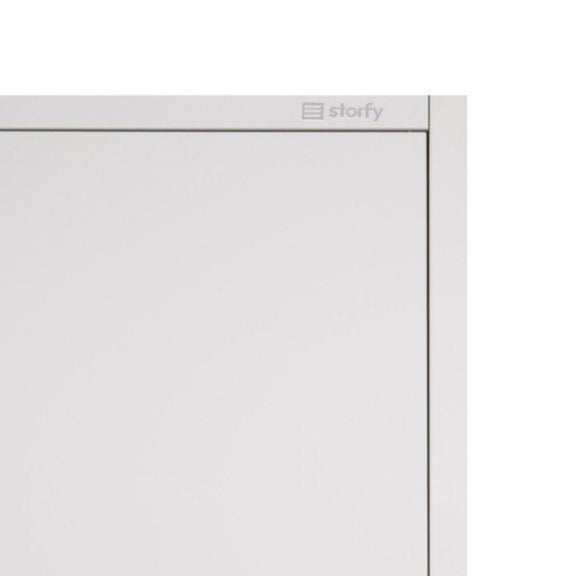 Skapis ir izgatavots no augstas kvalitātes 0,6 mm bieza tērauda, pārklāts ar izturīgu pelēku pulvera pārklājumu, kas garantē izturību pret mehāniskiem bojājumiem, skrāpējumiem un ikdienas lietošanu, vienlaikus saglabājot elegantu izskatu daudzus gadus.