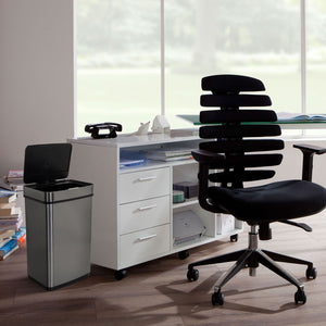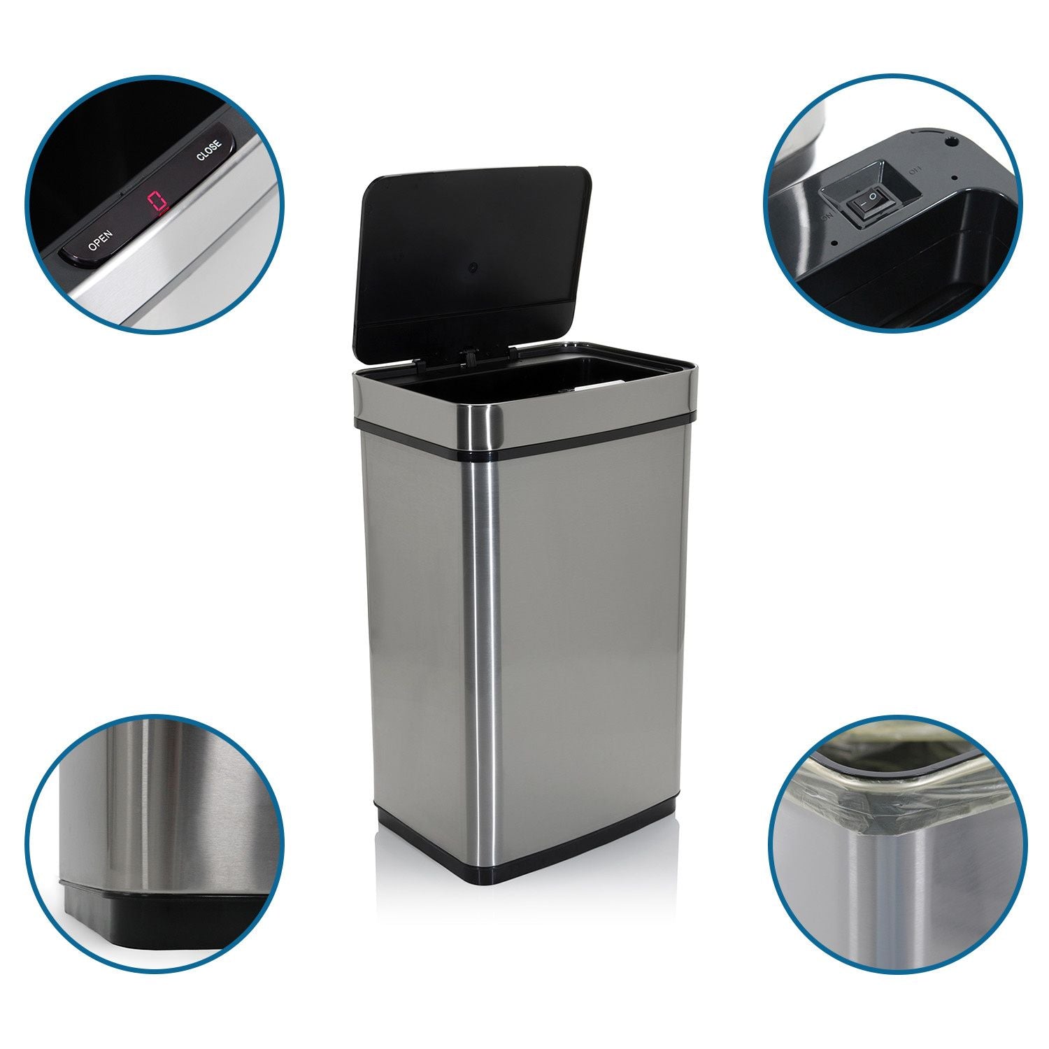 Izgatavota no lokšņu tērauda, šī atkritumu tvertne ir īpaši viegli tīrāma, pateicoties tās izturīgajam materiālam. Pateicoties modernajai infrasarkanajai tehnoloģijai, tvertne atveras un aizveras automātiski. Vienkārši turiet roku virs vāka, izmetiet atkritumus, un darbs izdarīts! Tvertne automātiski aizveras pēc 5 sekundēm.