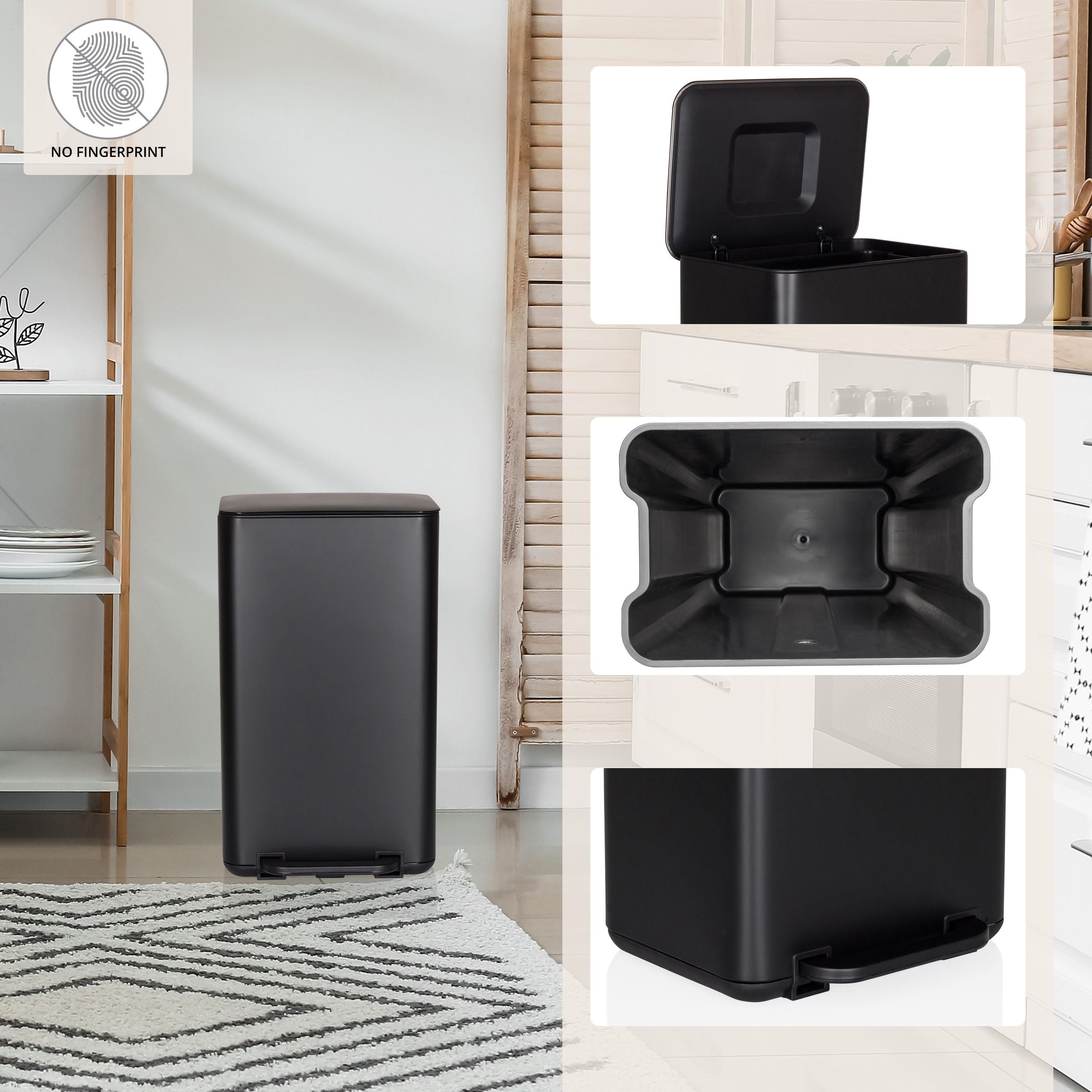 Ar 30 litru ietilpību tā piedāvā plašu vietu atkritumiem un pārsteidz ar savu pievilcīgo dizainu. Pateicoties Soft Close aizvēršanas mehānismam, vāks aizveras maigi un klusi. Pulverkrāsotā ārējā virsma nodrošina izturību, savukārt kājas pedālis ļauj to viegli atvērt. Noņemamajam iekšējam spainim, kas izgatavots no izturīga polipropilēna, ir rokturis pārnēsāšanai un atvere atkritumu maisiem, padarot to ērti lietojamu. Izvēlieties kvalitāti un dizainu – ienesiet savās mājās kārtību un stilu ar mūsu CLEAN NATURA atkritumu tvertni!