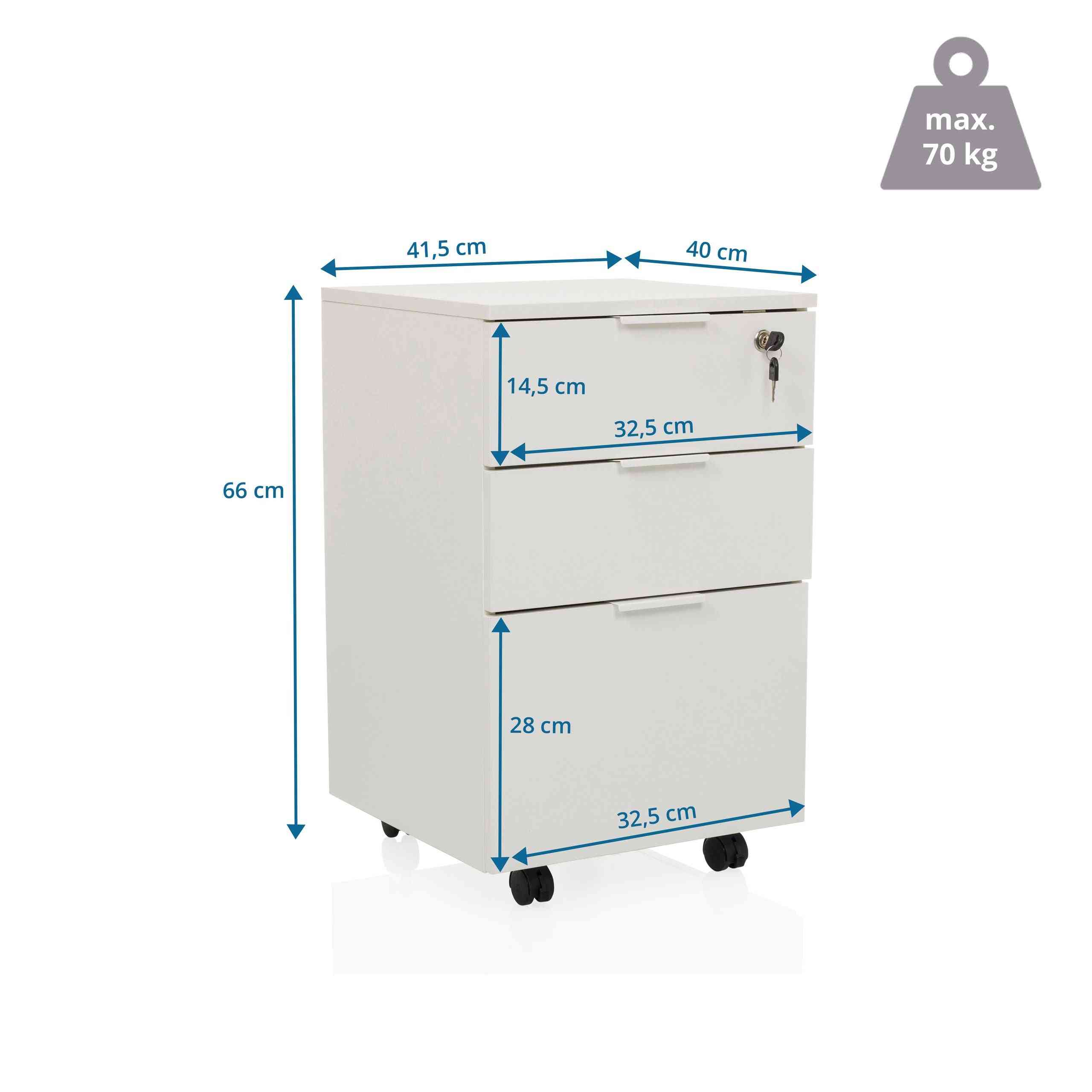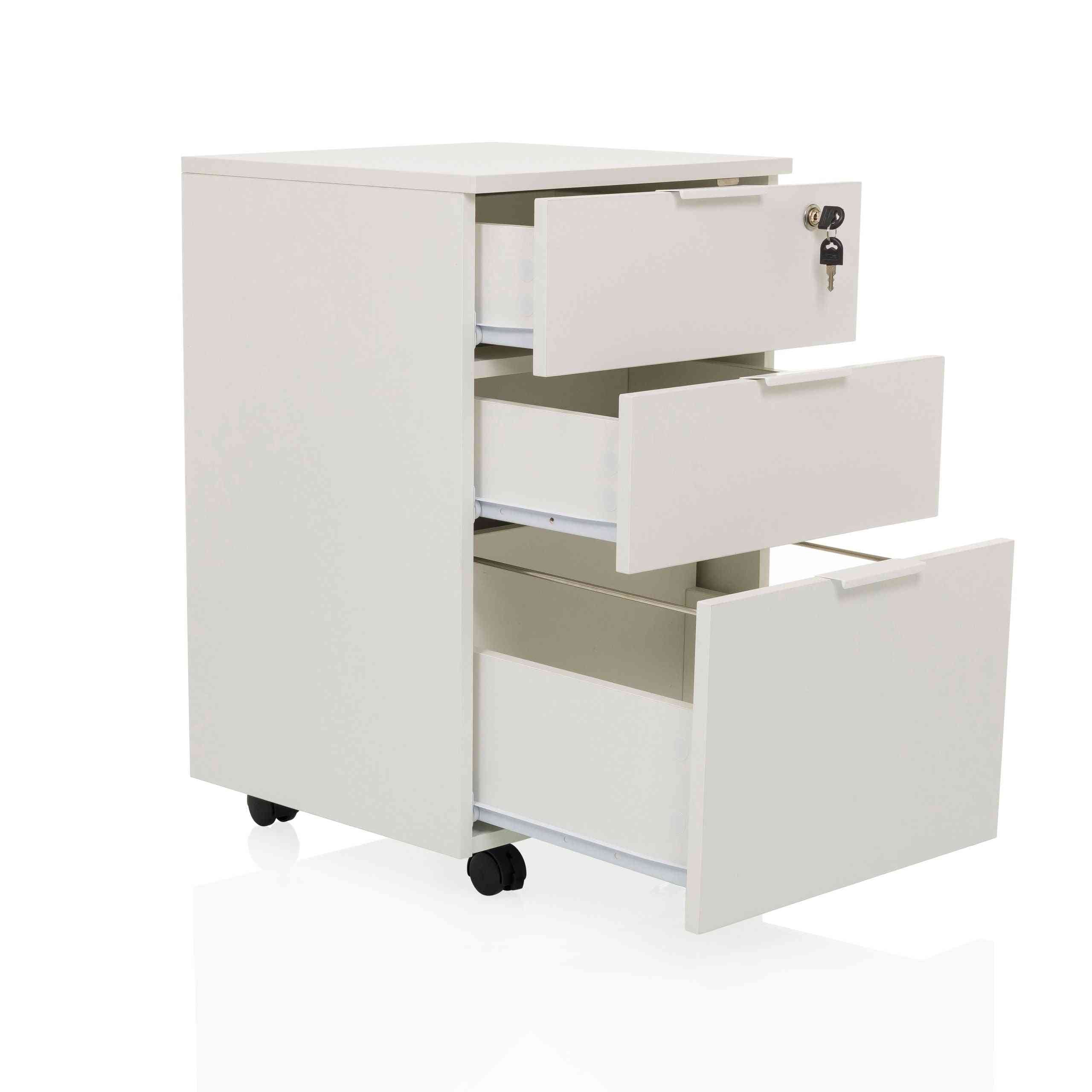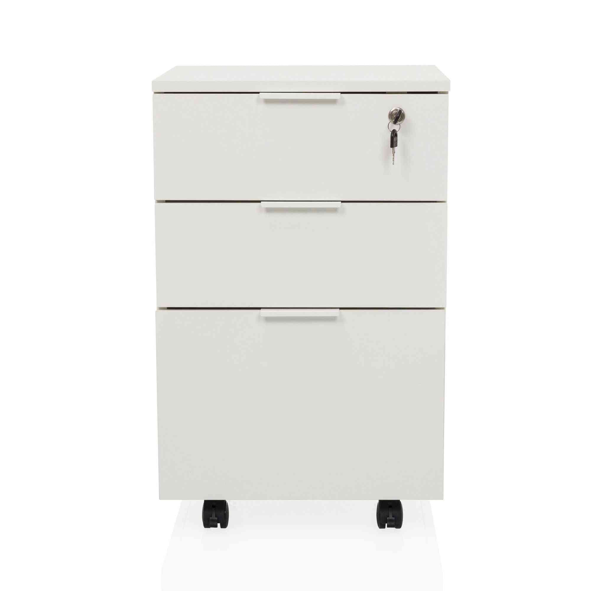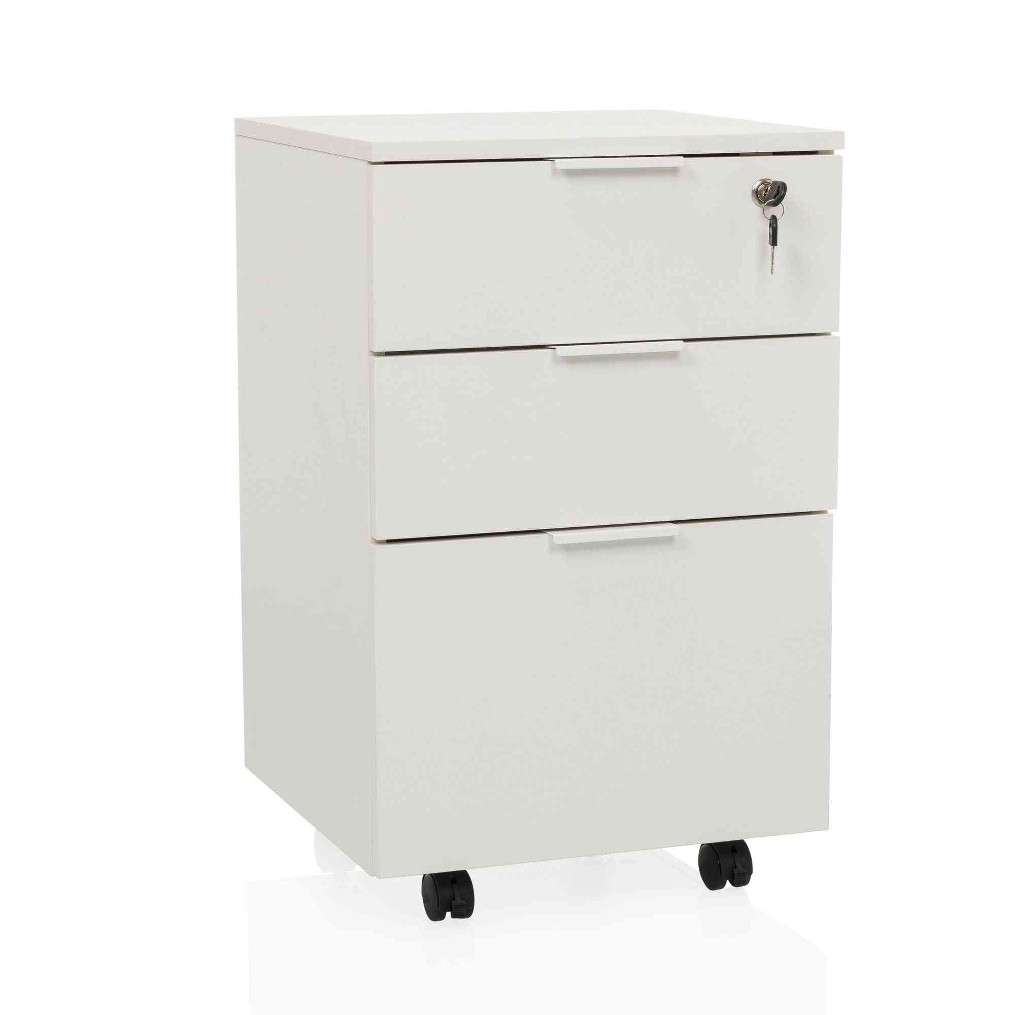 Atvilktņu bloks uz riteņiem LOCK, 3 atvilktnes, balts, slēdzams FD