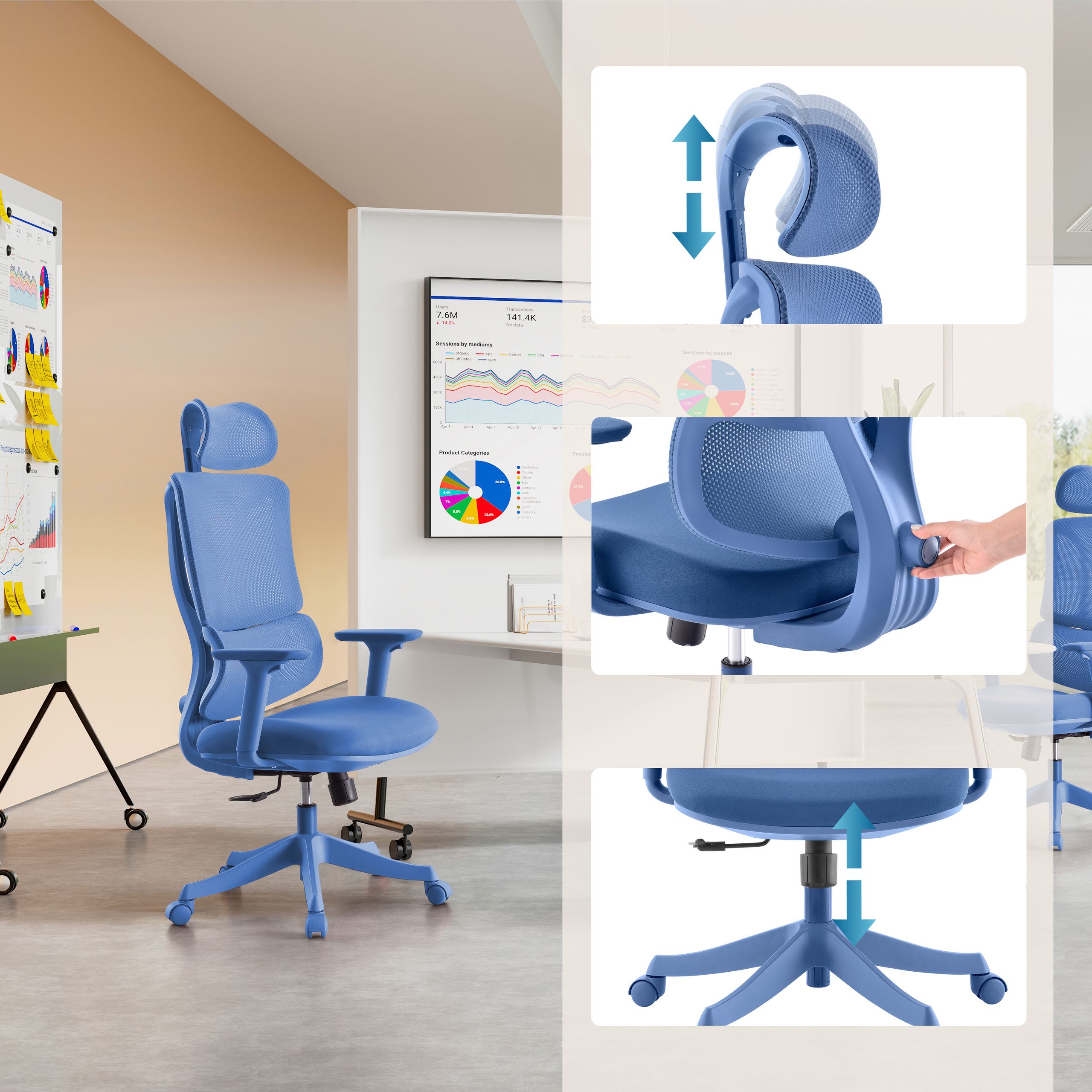 Biroja krēsls ERGOMY COLORE II, zils