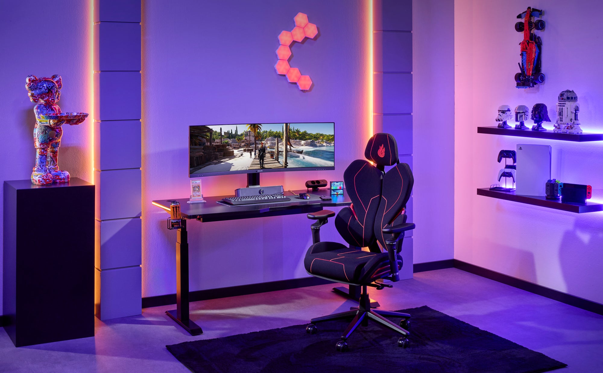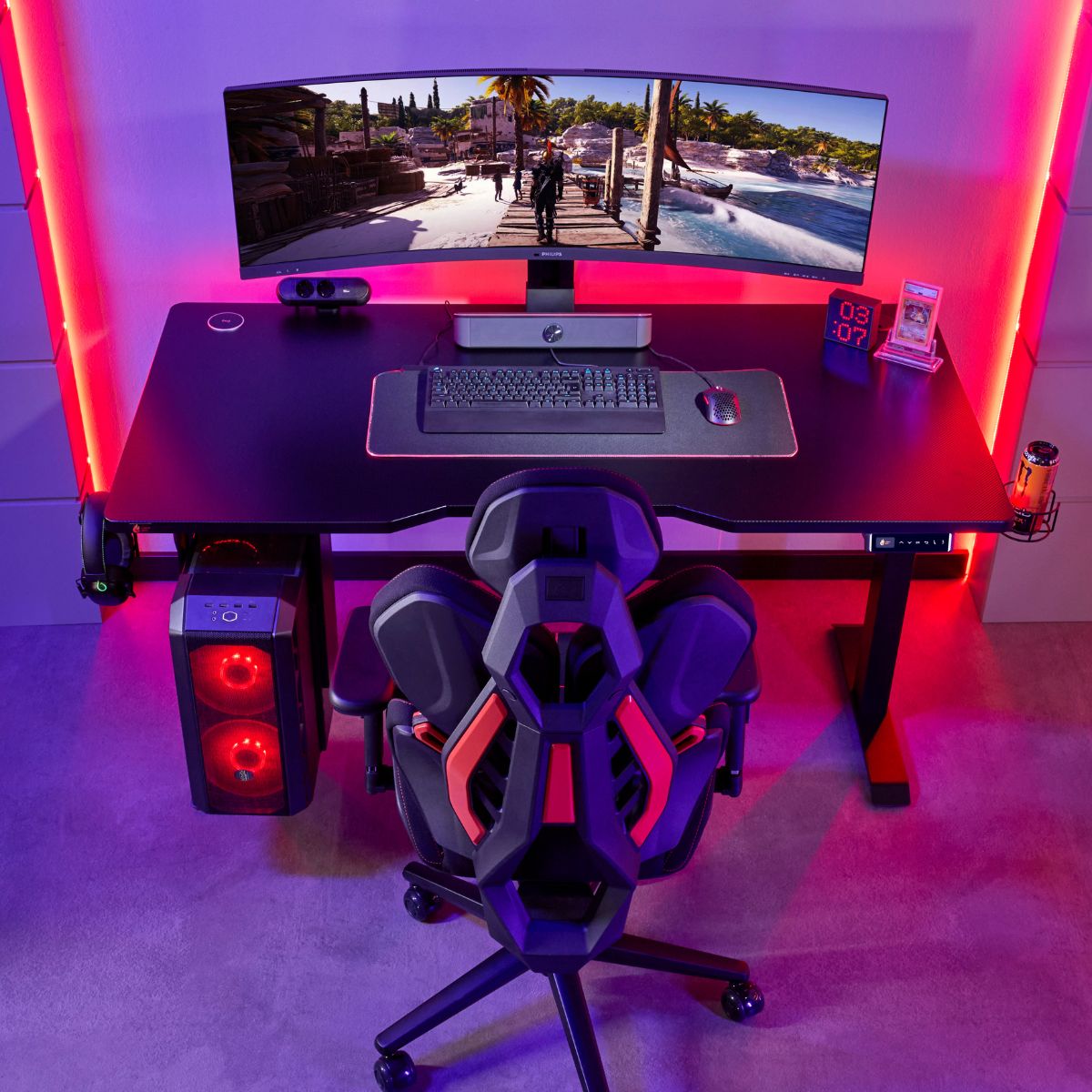 Integrēts, regulējams jostasvietas balsts nodrošina precīzu atbalstu jūsu muguras lejasdaļai, kas tik ļoti nepieciešams ilgām spēļu sesijām.