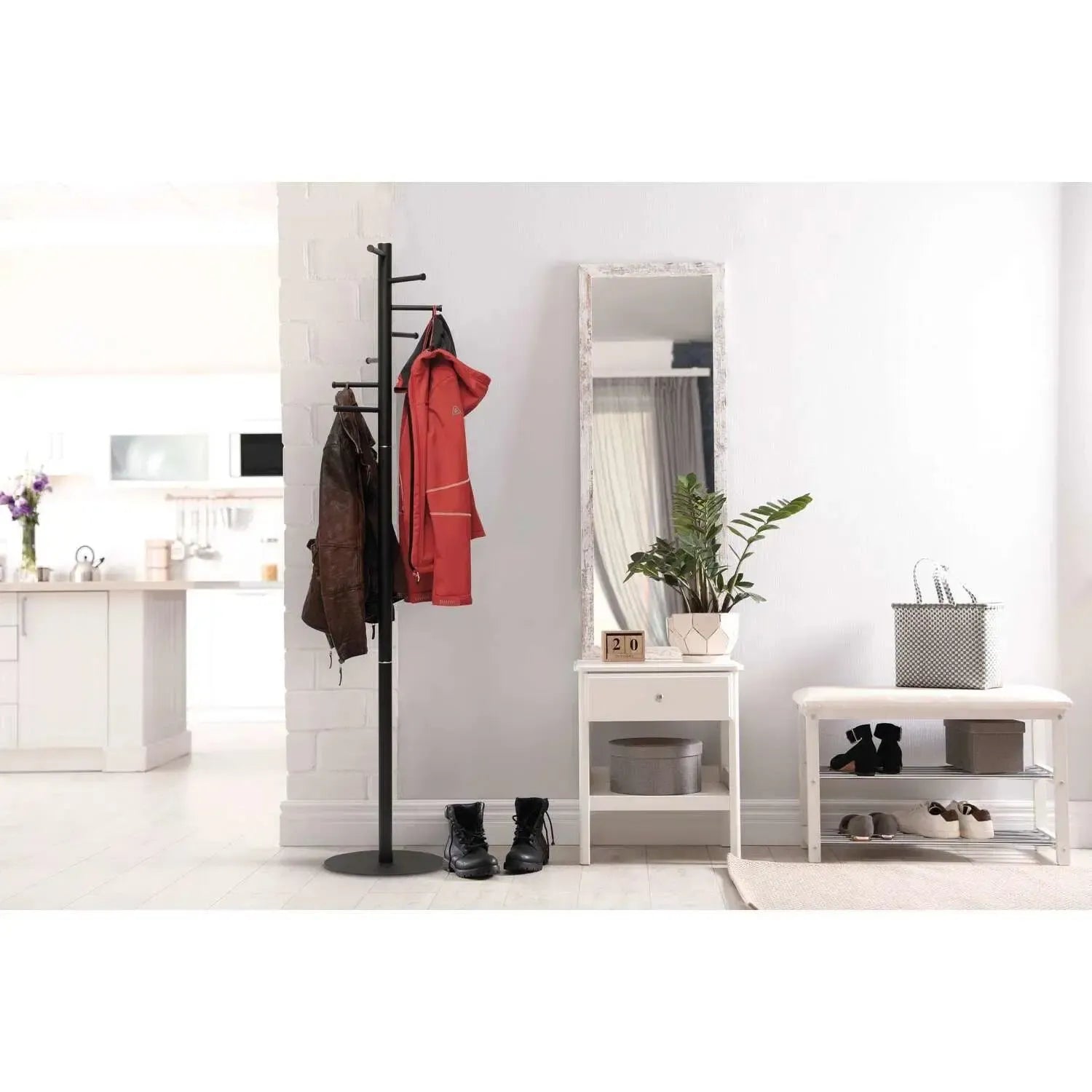 Izturīgs, vietu taupošs drēbju statīvs.