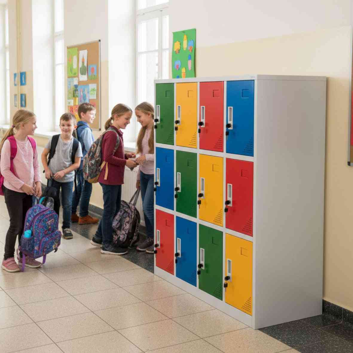 Krāsainā Rio Color skapja konstrukcija ir ideāli piemērota telpām, kur funkcionalitāte apvienojas ar estētiku un draudzīgu raksturu – tā ir ideāli piemērota bērnudārziem, sākumskolām, kā arī sabiedriskajiem centriem un izglītības iestādēm.