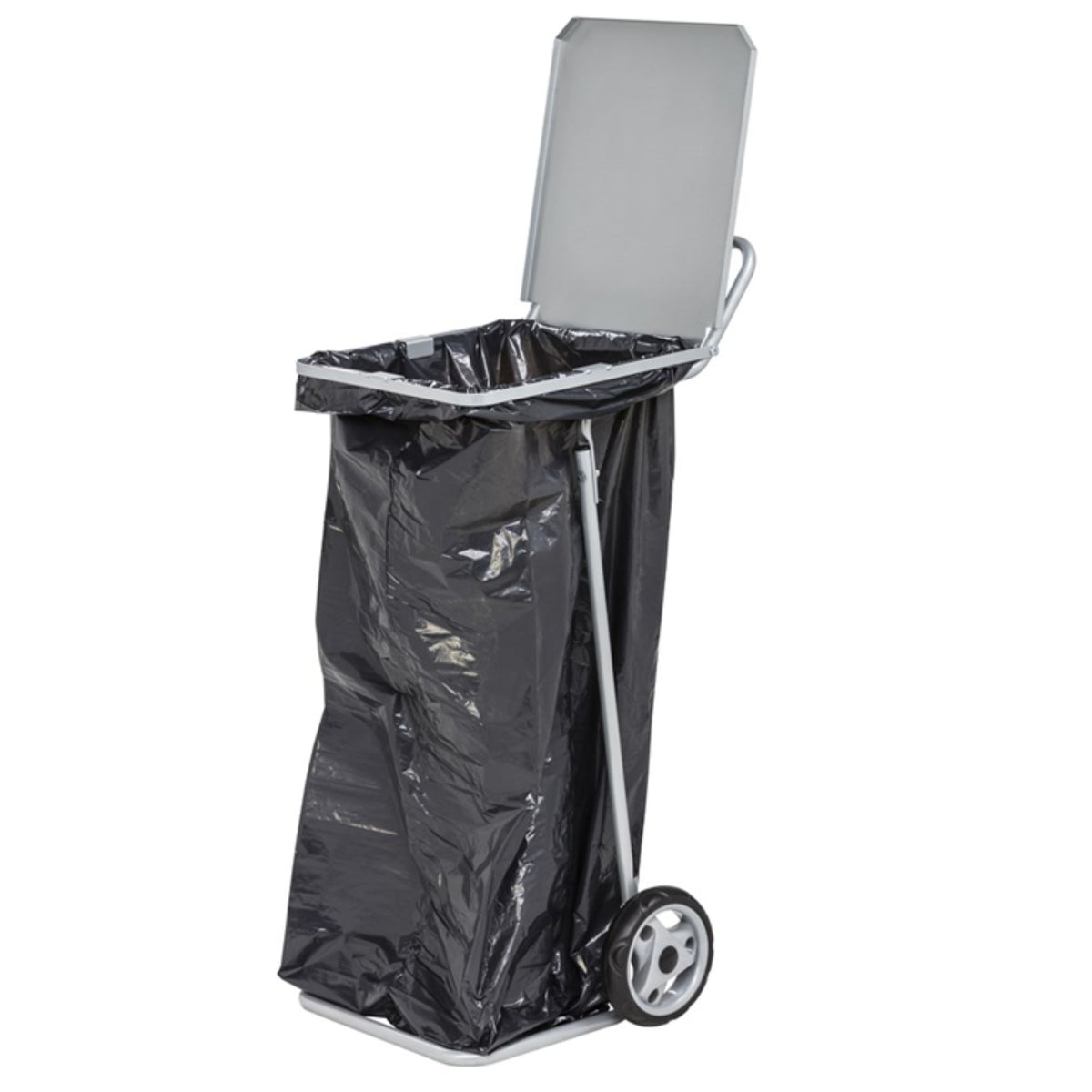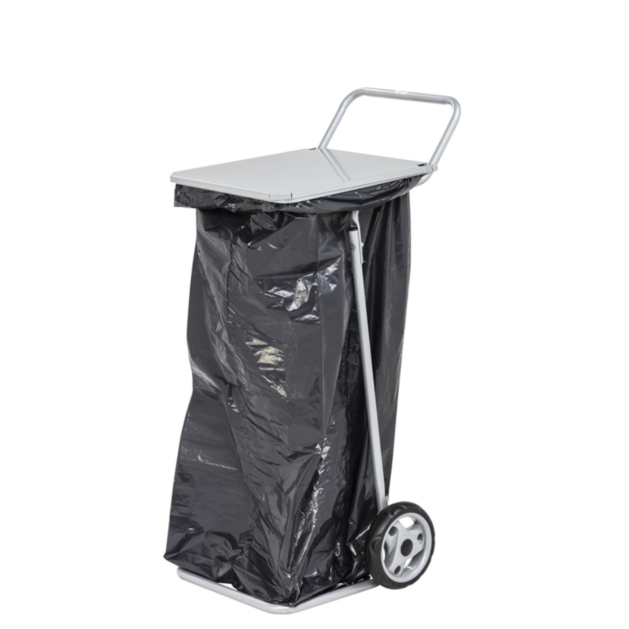 Ratiņi - atkritumu maisa turētājs ar vāku. Izgatavoti no tērauda caurules, kas pārklāta ar pelēku pulverkrāsjomu. Paredzēti 125 l maisiem. Aprīkoti ar diviem gumijas riteņiem, Ø 150 mm.