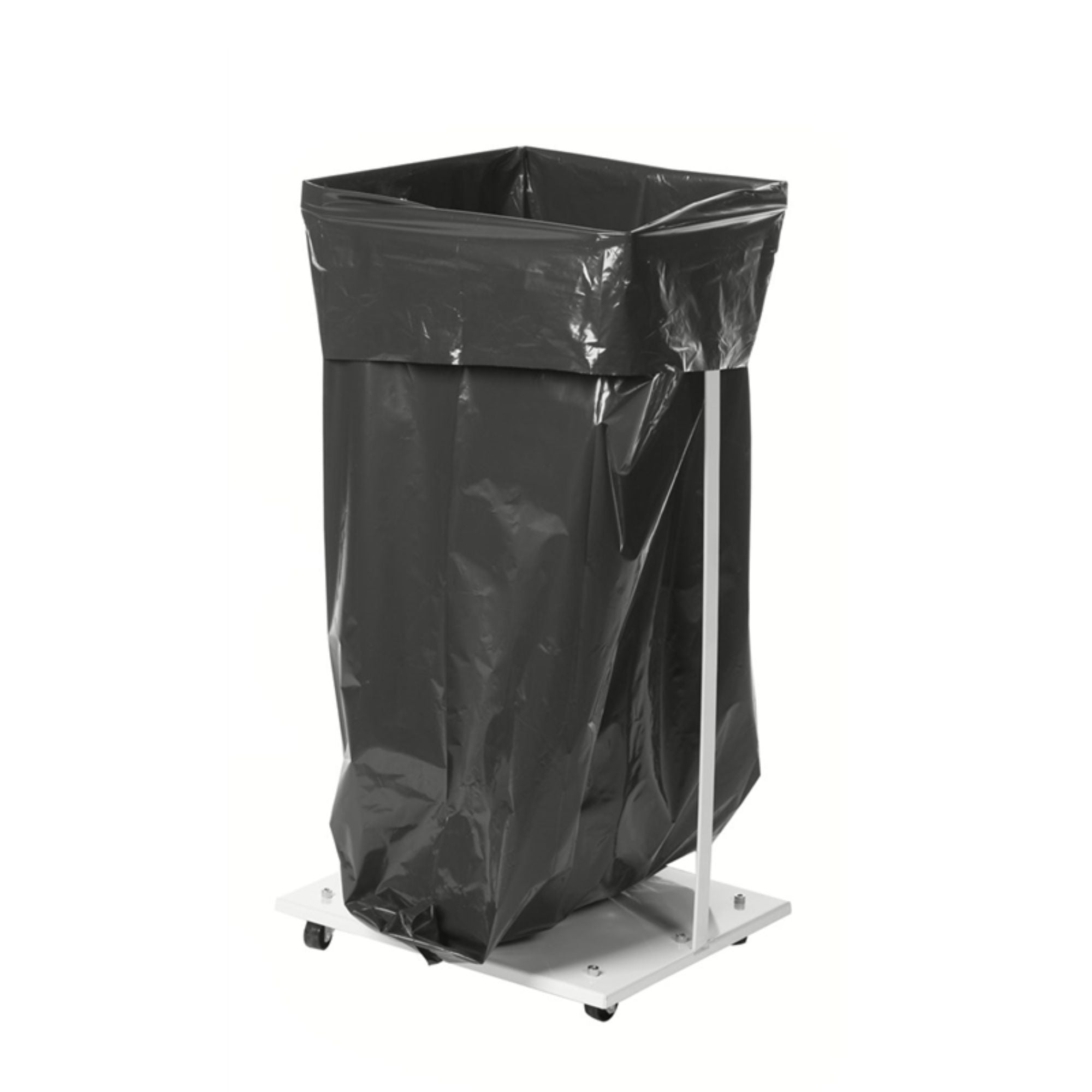 Atkritumu maisu statīvs, kas piemērots 125 litru plastmasas maisiem. Vienkārša konstrukcija, kas padara statīvu viegli lietojamu jebkurā vidē.