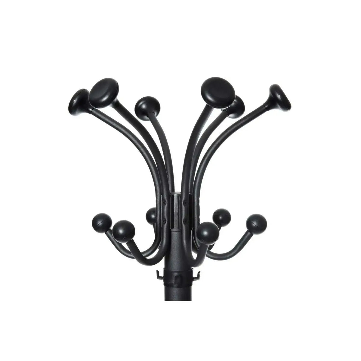 20 āķi: 6 metāla cepuru āķi un 6 mēteļu āķi, 4 papildu plastmasas āķi gan uz staba, gan lietussargu statīva.
