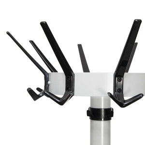 32 plastmasas āķi, kas izgatavoti no lūzumiem droša ABS: 8 cepuru āķi, 16 mēteļu āķi, 4 papildu āķi gan uz staba, gan lietussargu statīva.