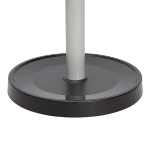 No izturīga tērauda izgatavots stabils statīvs, droši nostiprināts betona pamatnē, kura pārklāta ar izturīgu pret skrāpējumiem plastmasu, pamatnes apakšā iestrādāts grīdas aizsargs.