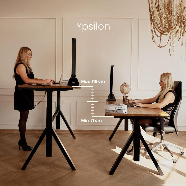 “Ypsilon” ir aprīkots ar Y veida kāju konstrukciju, kas padara galdu vēl stabilāku. Turklāt tam ir arī visas priekšrocības, kas raksturīgas citiem mūsu rakstāmgaldiem ar diviem motoriem, kā arī 8 gadu garantija.